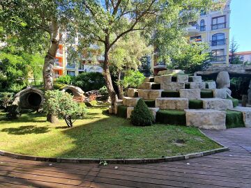 На разположение на гостите и собствениците има отлично поддържана територия с красиво озеленение, открит плувен басейн с детска секция, външно джакузи, ресторант, рецепция, СПА център, фитнес, подземен паркинг, денонощна охрана и видеонаблюдение, детска площадка, барбекю зона, контролиран достъп, поддръжка на общите части, игрище.