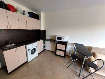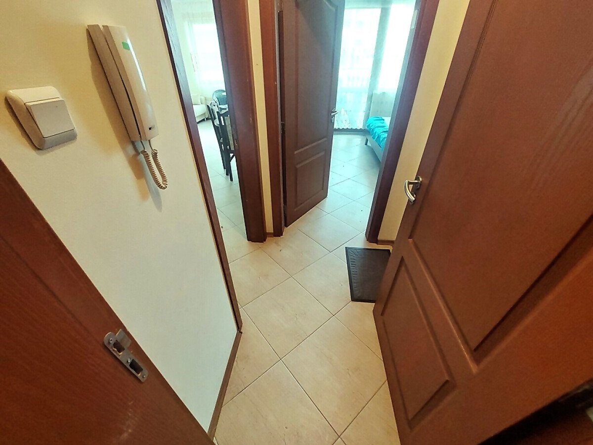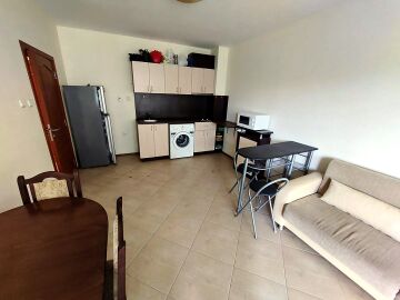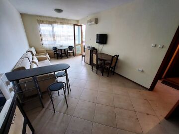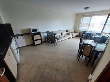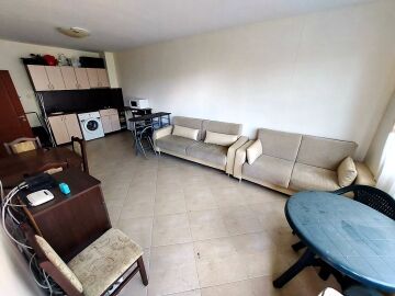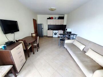 Апартаментът се продава готов за живеене, напълно обзаведен и оборудван, със следното разпределение – входно антре, голяма всекидневна с обособен кухненски бокс и зона за хранене, баня с тоалетна и душ кабина, спалня, тераса с чудесна гледка към озеленения двор и към басейна.