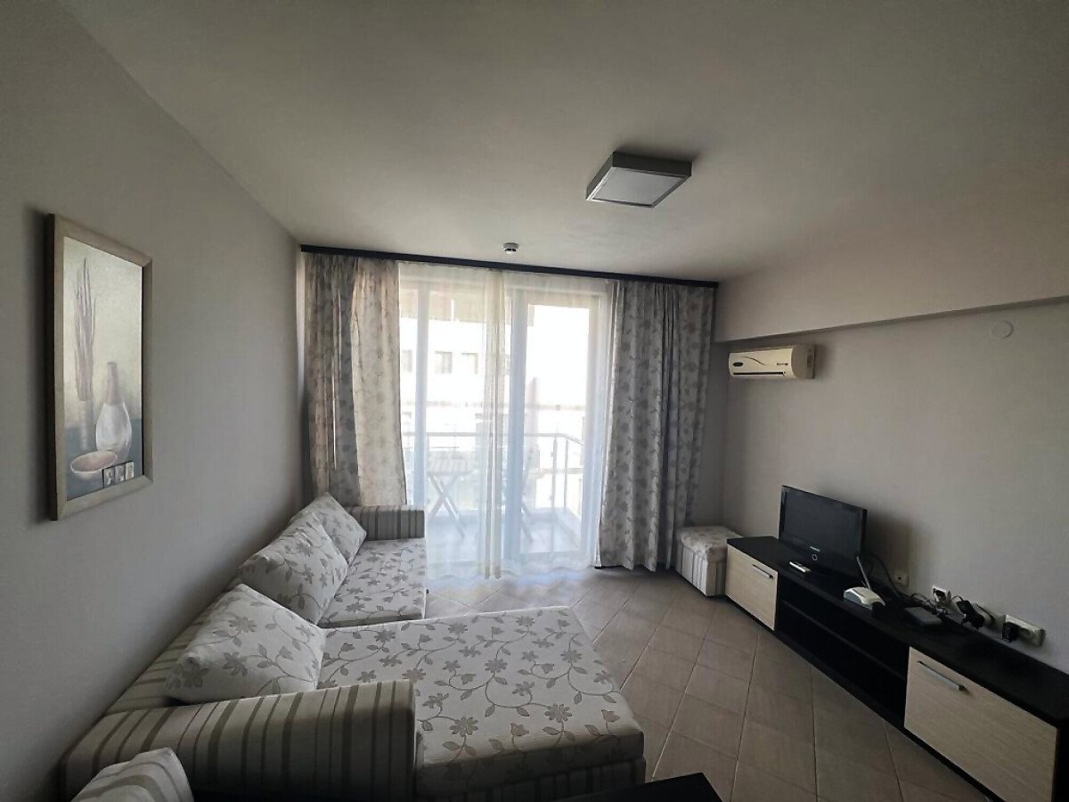 Предлагаме за продажба просторен двустаен апартамент в комплекс „Тарсис“, който се намира в курорта Слънчев бряг, близо до красив озеленен парк и на 500 метра от морето и плажната ивица. Районът е тих и спокоен, но същевременно в близост до необходимата инфраструктура – магазини, ресторанти, автобусни спирки.