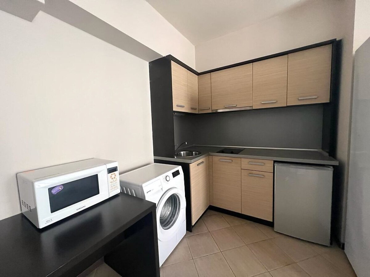 Апартаментът е разположен на четвърти етаж и се състои от входно антре, всекидневна с оборудван кухненски бокс, баня с тоалетна и душ кабина, просторна спалня, тераса.