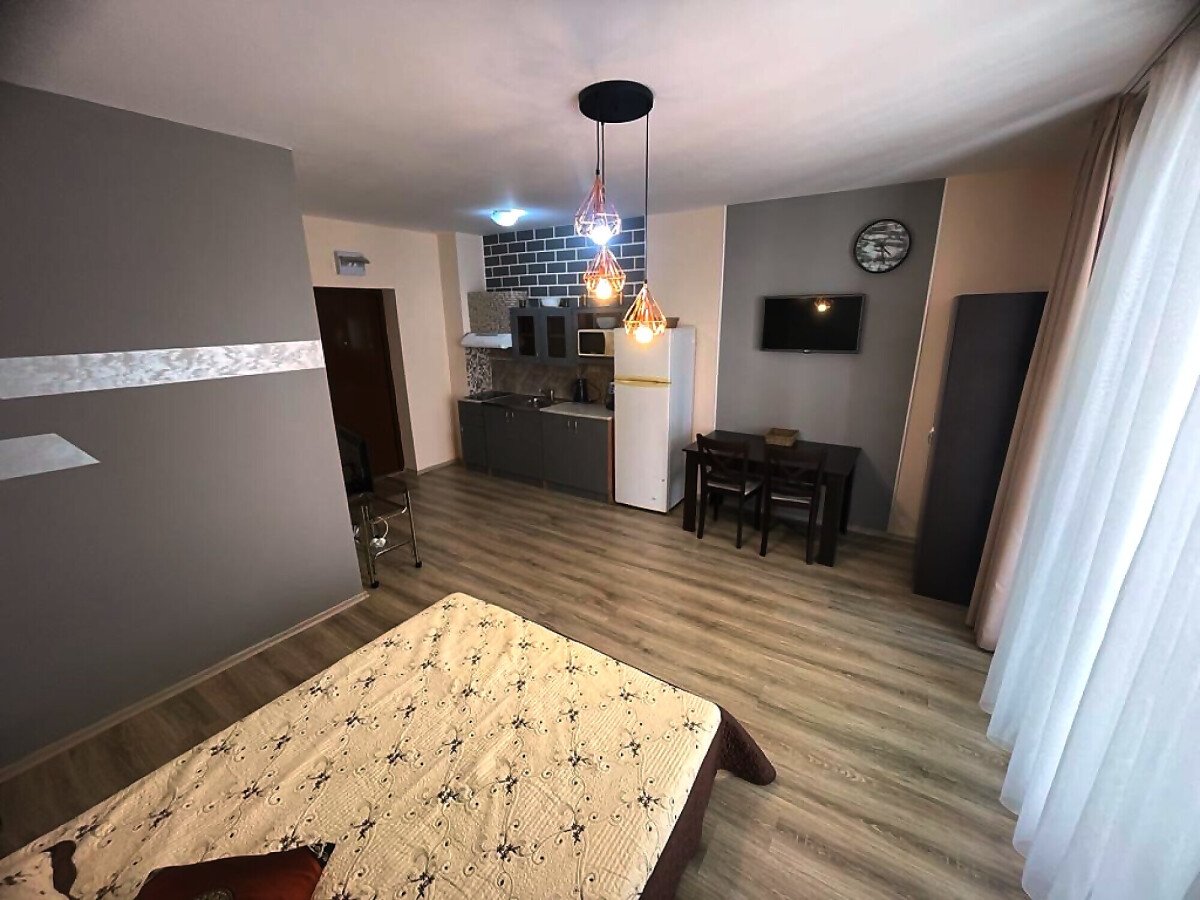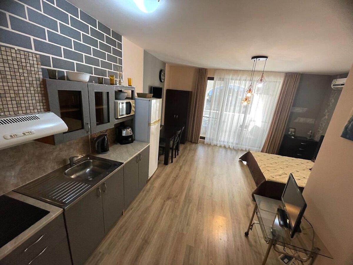 Предлагаме за продажба студио в комплекс „Аполон 9“, разположен между курортното селище Равда и град Несебър, на 300 метра от морето и плажната ивица и в близост до всичко необходимо - магазини, ресторанти, летни атракции.