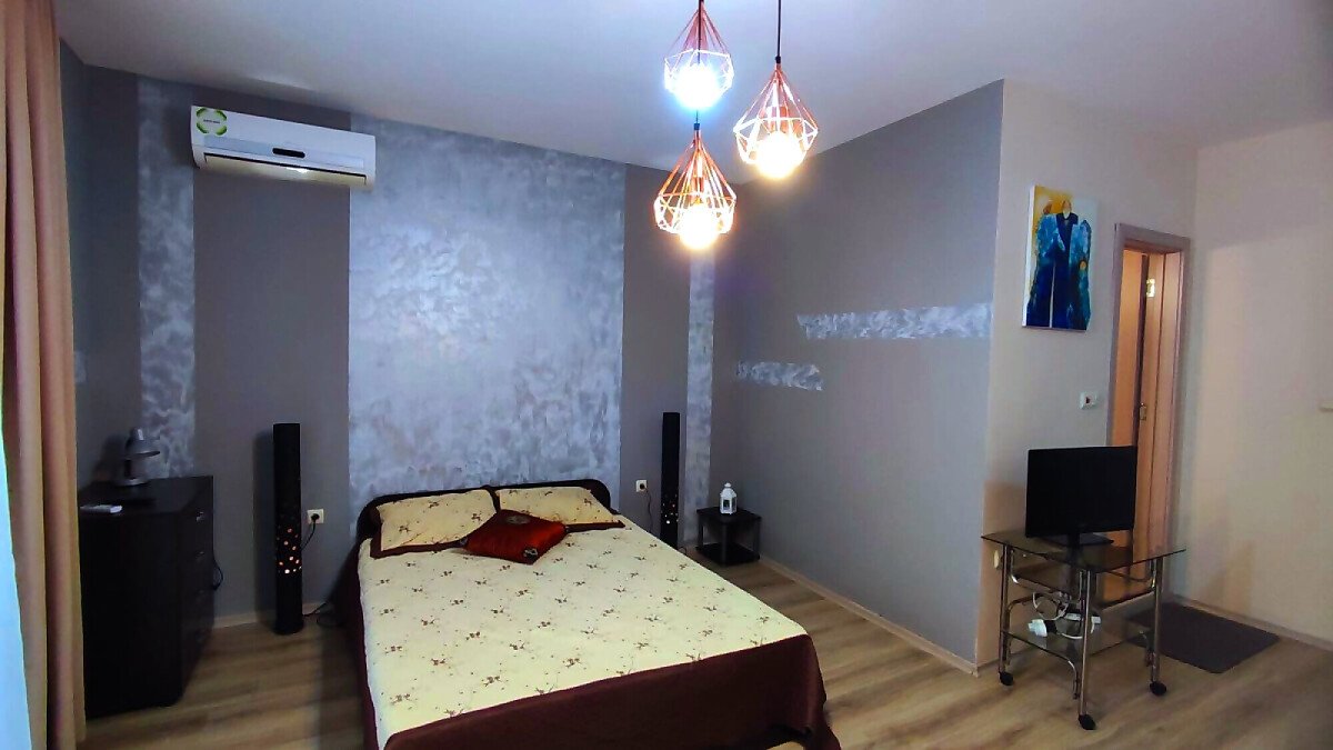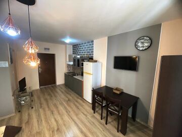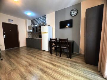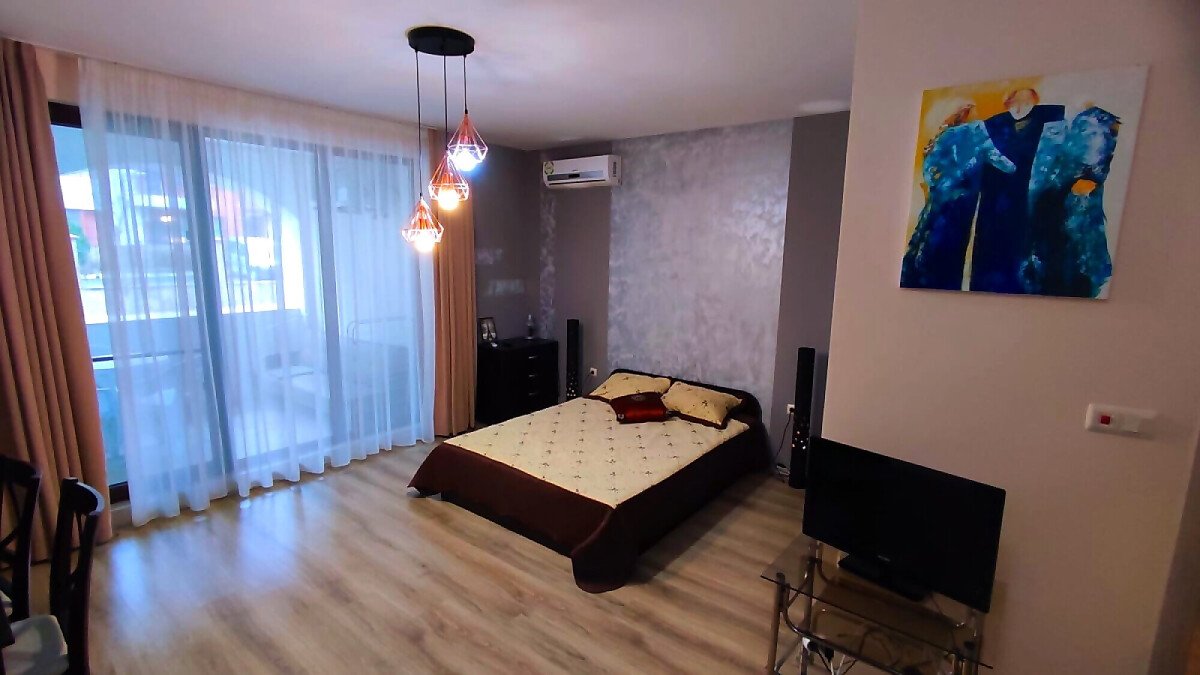 Студиото се продава след основен ремонт, с нови мебели и домакинска електротехника, готово за нанасяне или отдаване под наем. Апартаментът е разположен на партерен етаж и се състои от входно антре, кухненски бокс, всекидневна с обособена спалня и трапезария, баня с тоалетна и душ кабина, мебелирана тераса с гледка към двора.