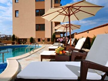 Предлагаме за продажба прекрасен двустаен апартамент в комплекс „Stany Court”, разположен в курортното селище Равда, на 200 метра от плажната ивица. В непосредствена близост е старият град на Несебър, както и голям аквапарк.