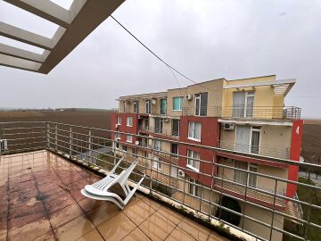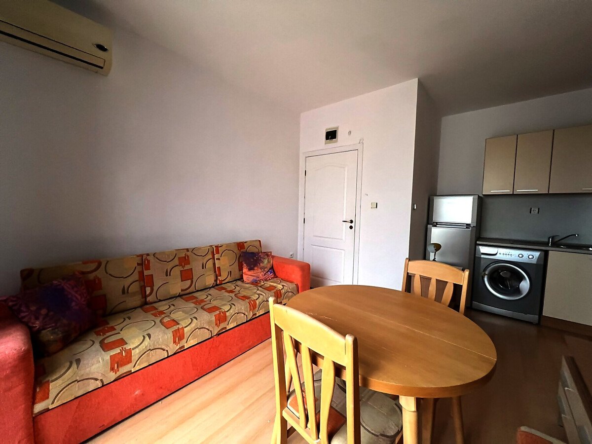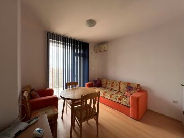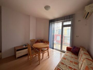 Апартаментът е разположен на четвърти, последен етаж и се състои от светла всекидневна с кът за хранене и кухненски бокс, уютна спалня, баня с тоалетна, балкон с изглед към вътрешната част на комплекса.