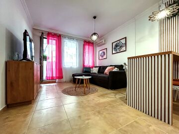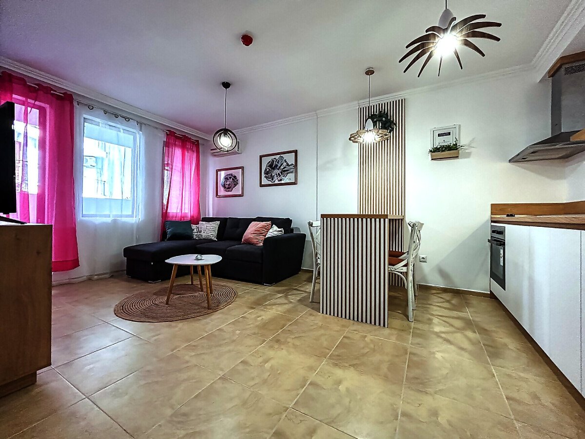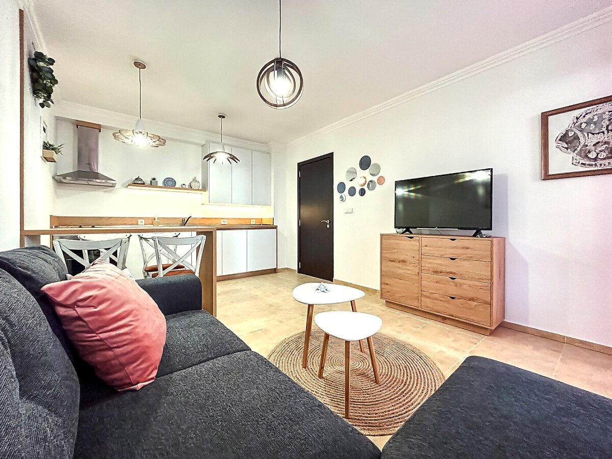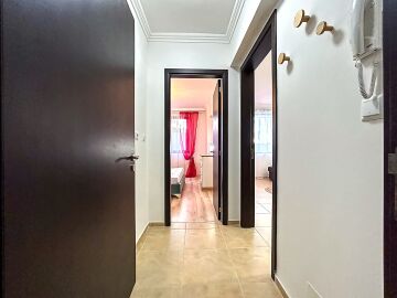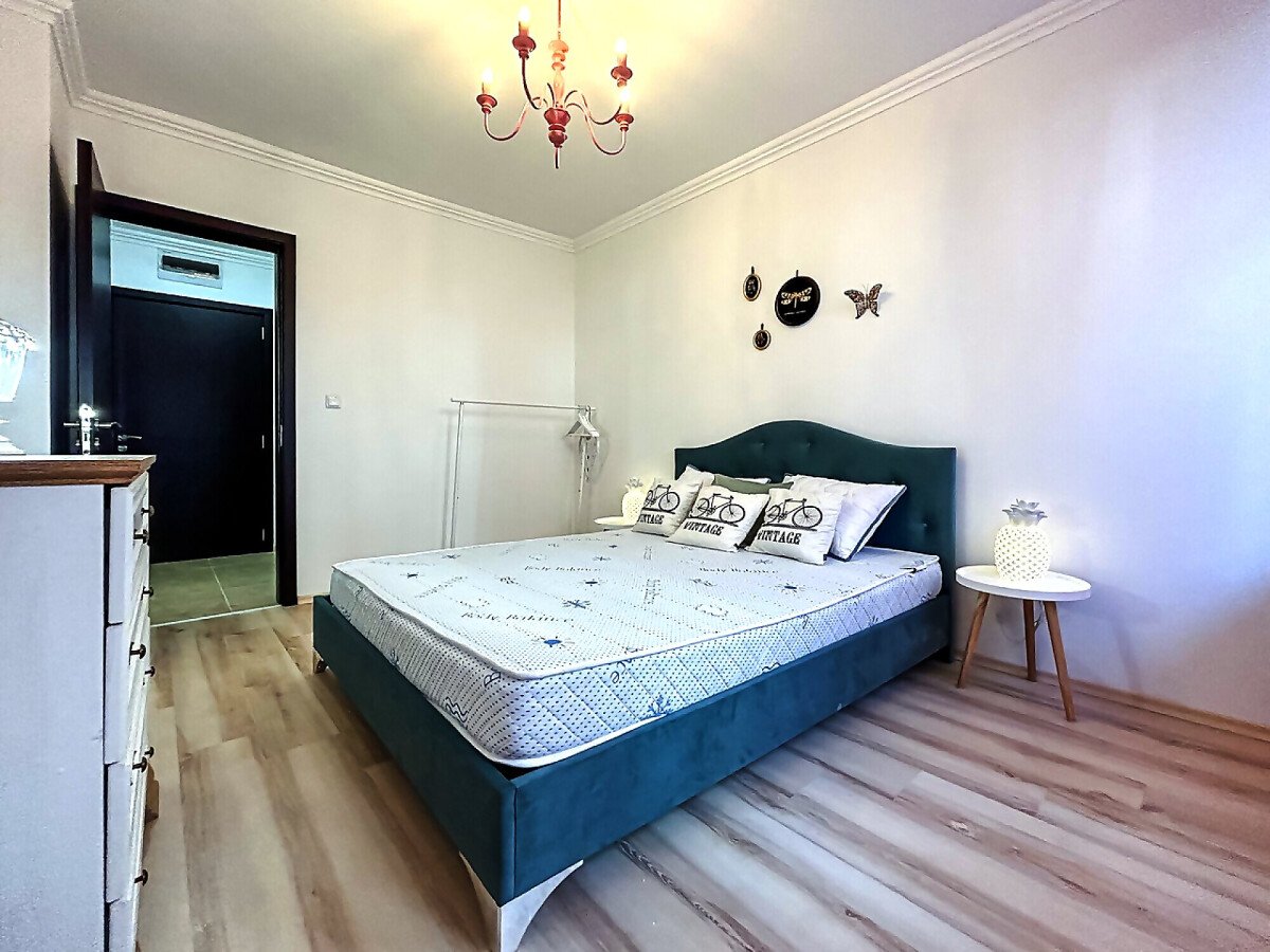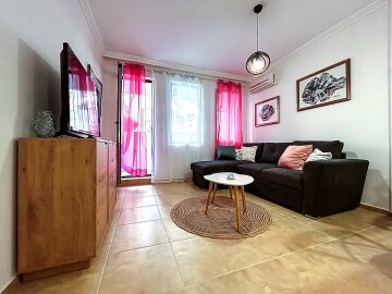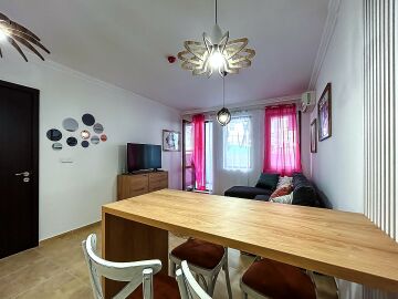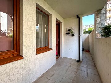 Апартаментът се намира на партерен етаж и има следното разпределение – входно антре, всекидневна с кухненски бокс и зона за хранене, спалня, баня с тоалетна, тераса с гледка към двора.