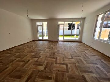 Първи етаж – входно антре, просторна всекидневна с кухненска част, тоалетна, веранда с излаз към двора, гардеробна и склад.