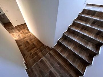 Втори етаж – три спални, две бани с тоалетна, тераса с чудесен изглед към двора.