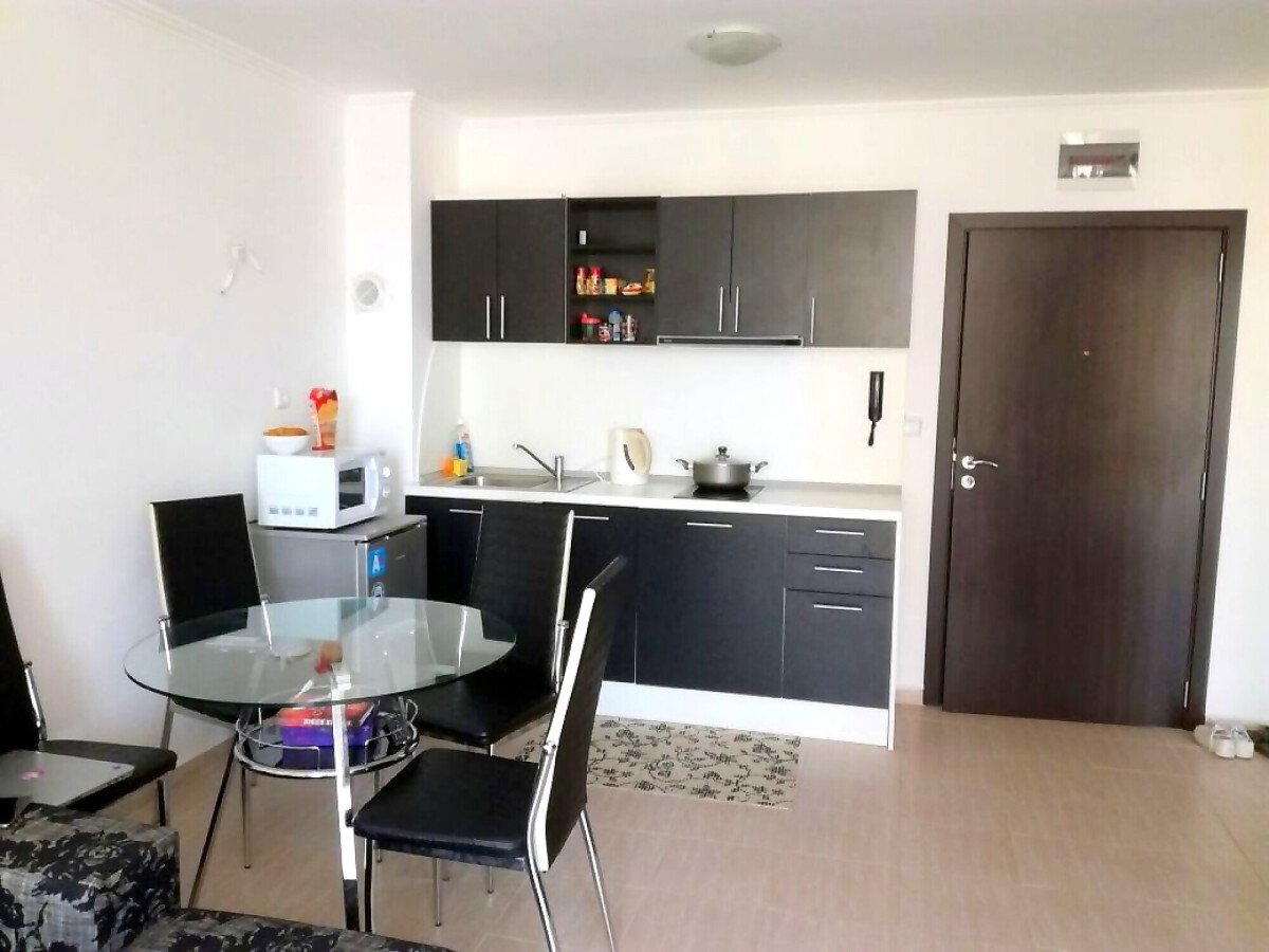 Апартаментът е обзаведен и се състои от антре, дневна с кухненски бокс, спалня, баня с тоалетна и чудесна тераса.