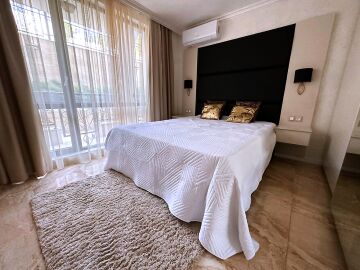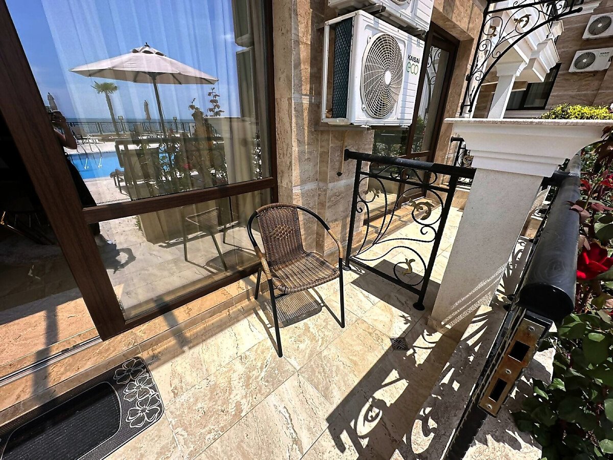 Предлагаме за продажба луксозен двустаен апартамент с гледка към морето и към басейна в комплекс „Оникс“, позициониран на първа линия в курорта Свети Влас.