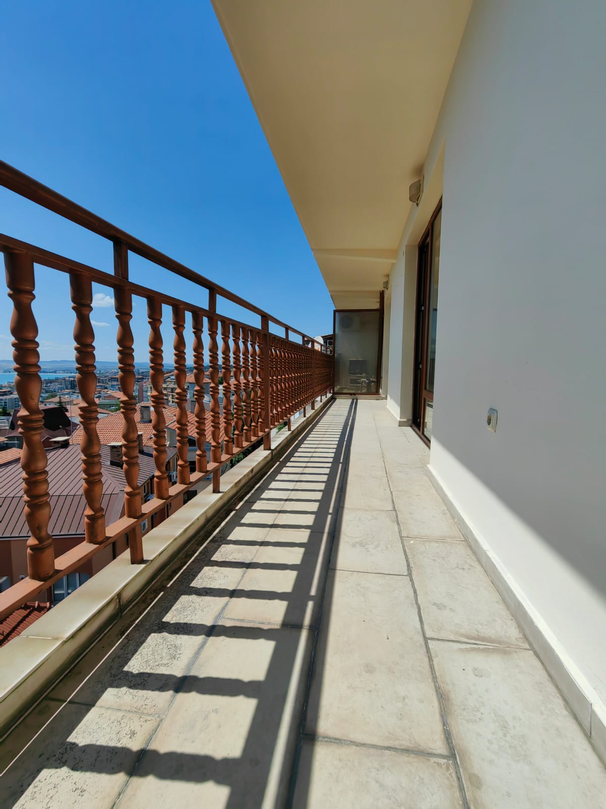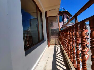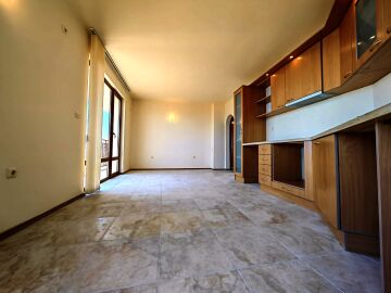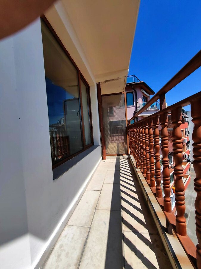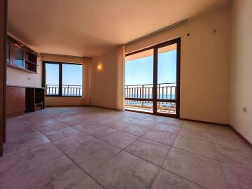 Апартаментът е разположен на трети етаж в сграда без асансьор и има следното разпределение – входно антре, просторна всекидневна, голяма тераса с уникална гледка към морето, спалня, баня с тоалетна. Имотът се продава без обзавеждане и оборудване, но банята е напълно завършена.