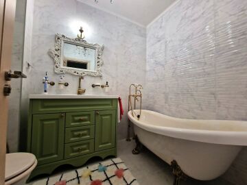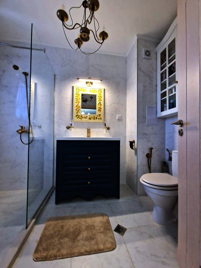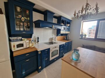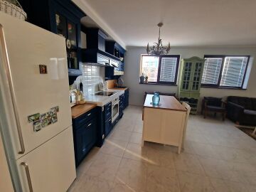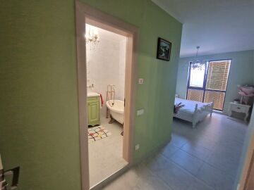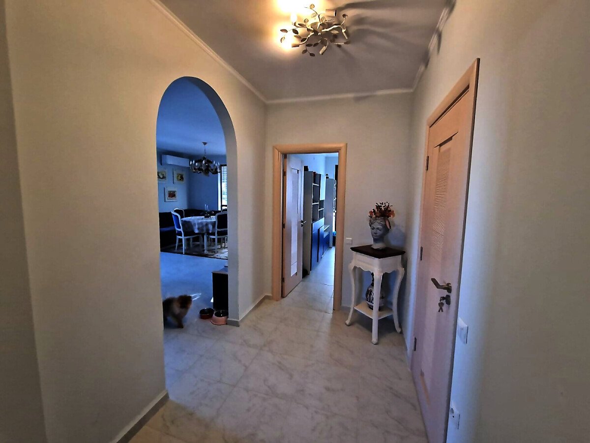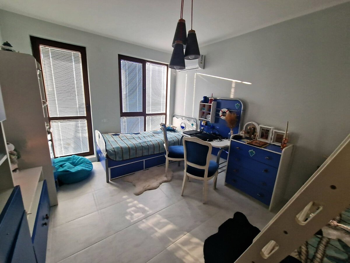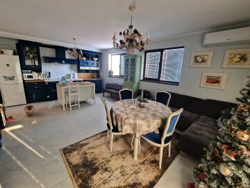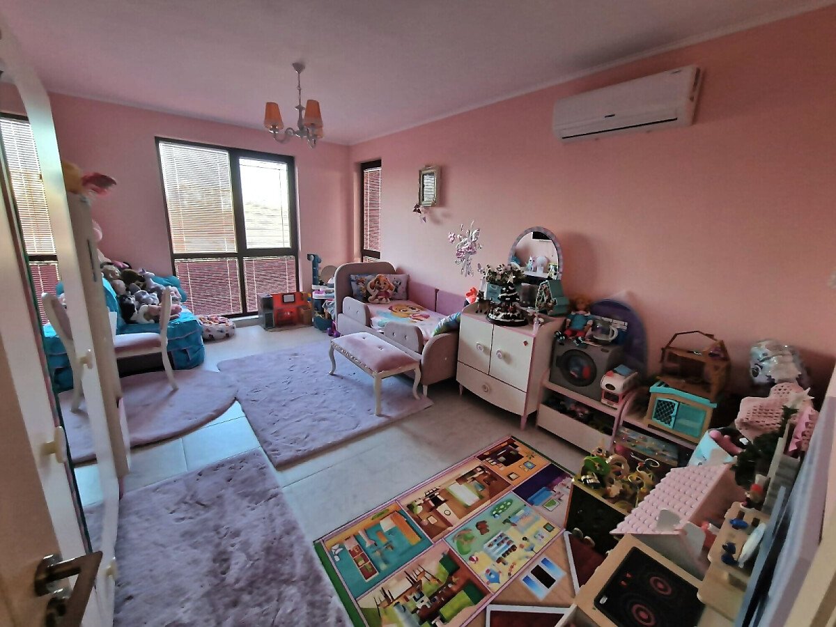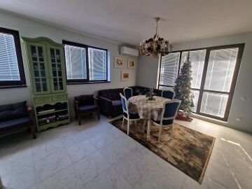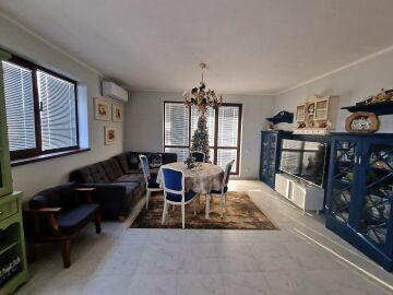 Ние Ви предлагаме да станете собственик на уникален многостаен апартамент в този комплекс. Имотът се продава обзаведен с италиански мебели, оборудван с качествена домакинска електротехника, със следното разпределение – голямо входно антре, просторна всекидневна с трапезария и кухня, три спални, две бани с тоалетни – една с вана, другата с душ кабина, дрешник, тераса.