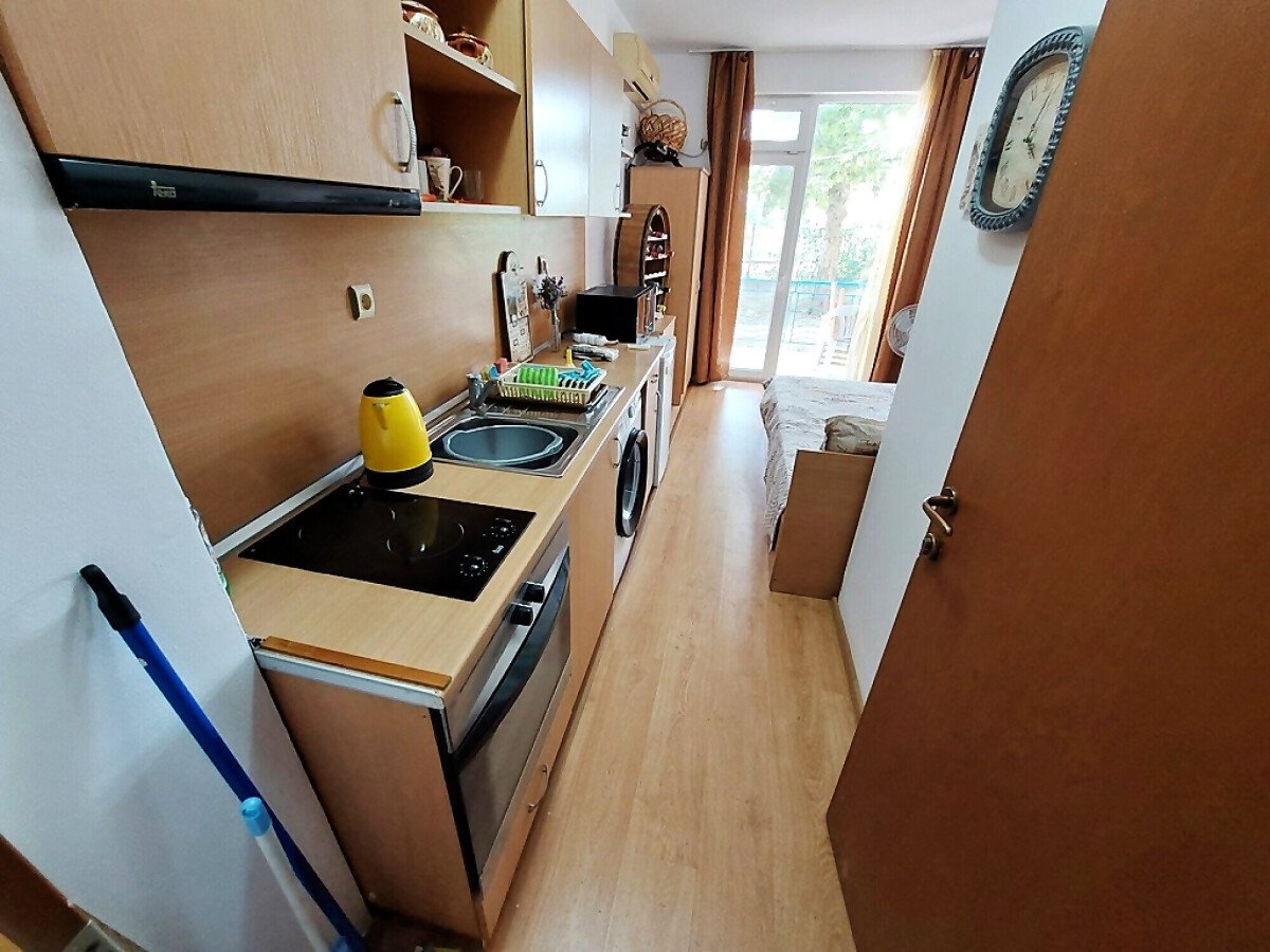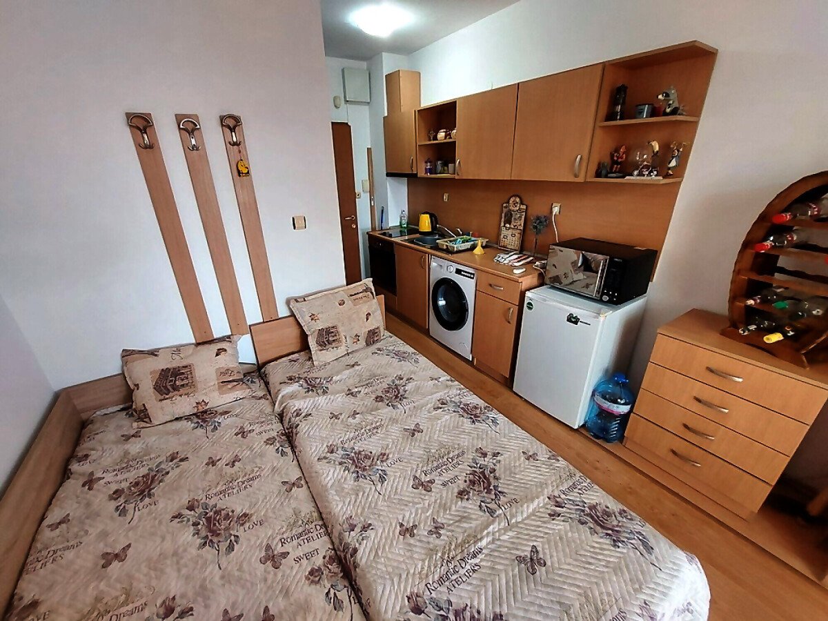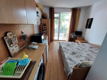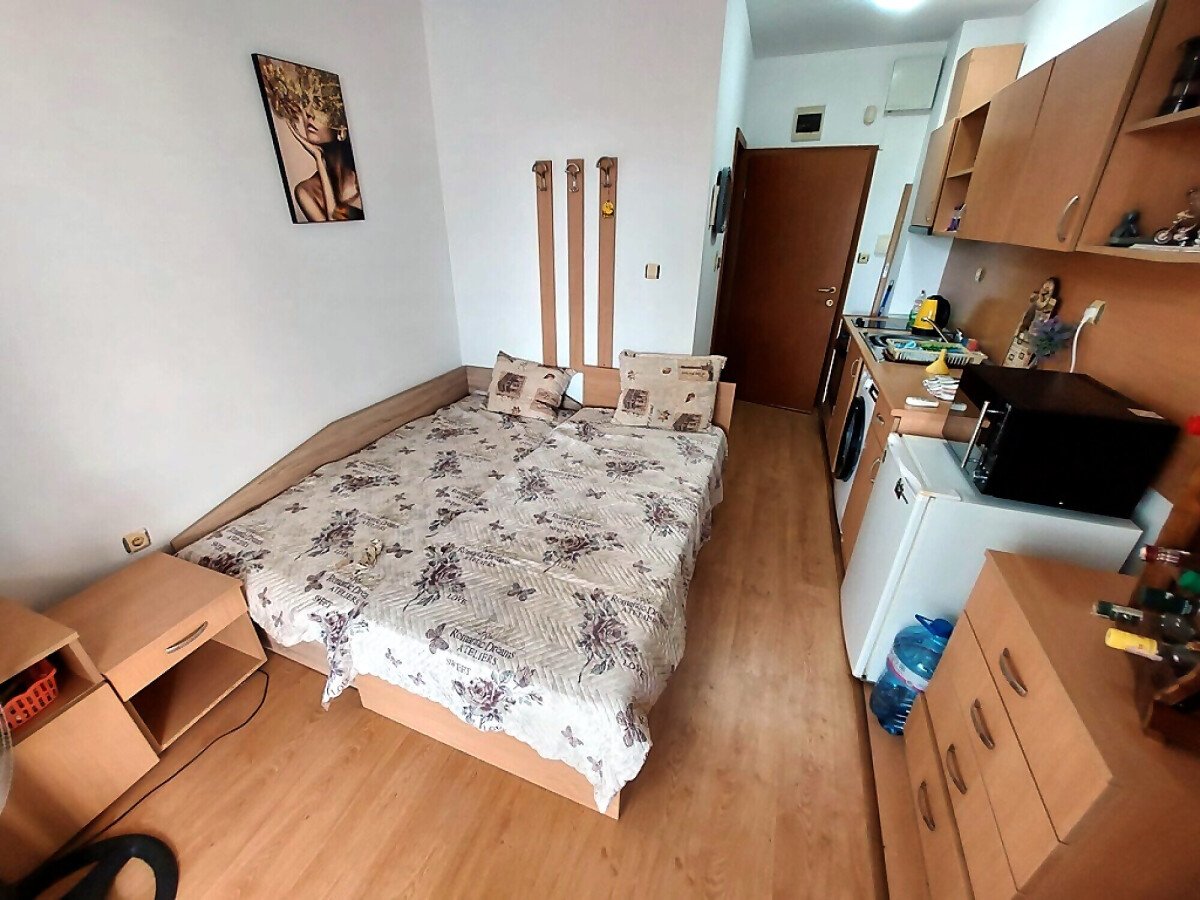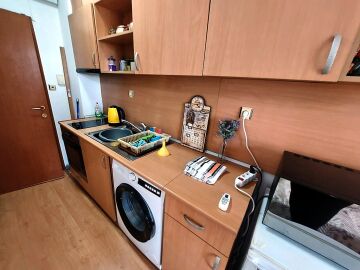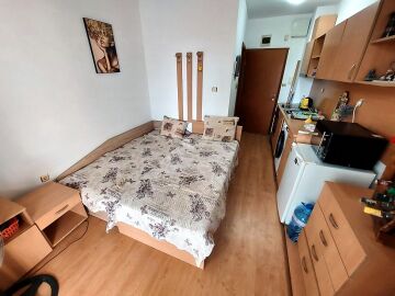 Студиото е разположено на партерен етаж, слънчево и функционално, със следното разпределение – входно антре, оборудван кухненски бокс, всекидневна с обособена спалня, баня с тоалетна, балкон с гледка към двора.