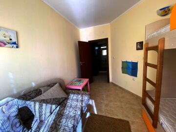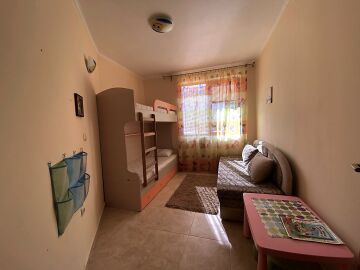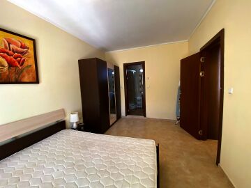 Апартаментът се намира на трети етаж и се състои от входно антре, всекидневна с оборудван кухненски бокс и обособена трапезария, две спални, баня с тоалетна и душ кабина, отделна тоалетна, тераса с хубав изглед към озеленения двор на комплекса.