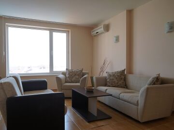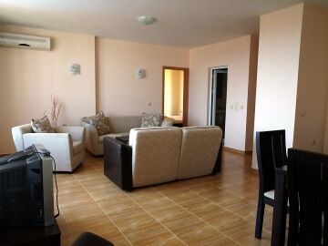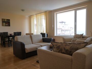 Апартаментът е с площ 119 кв.м и се състои от огромна дневна с кухненски бокс и трапезария, спалня, страхотна голяма тераса и баня с тоалетна.