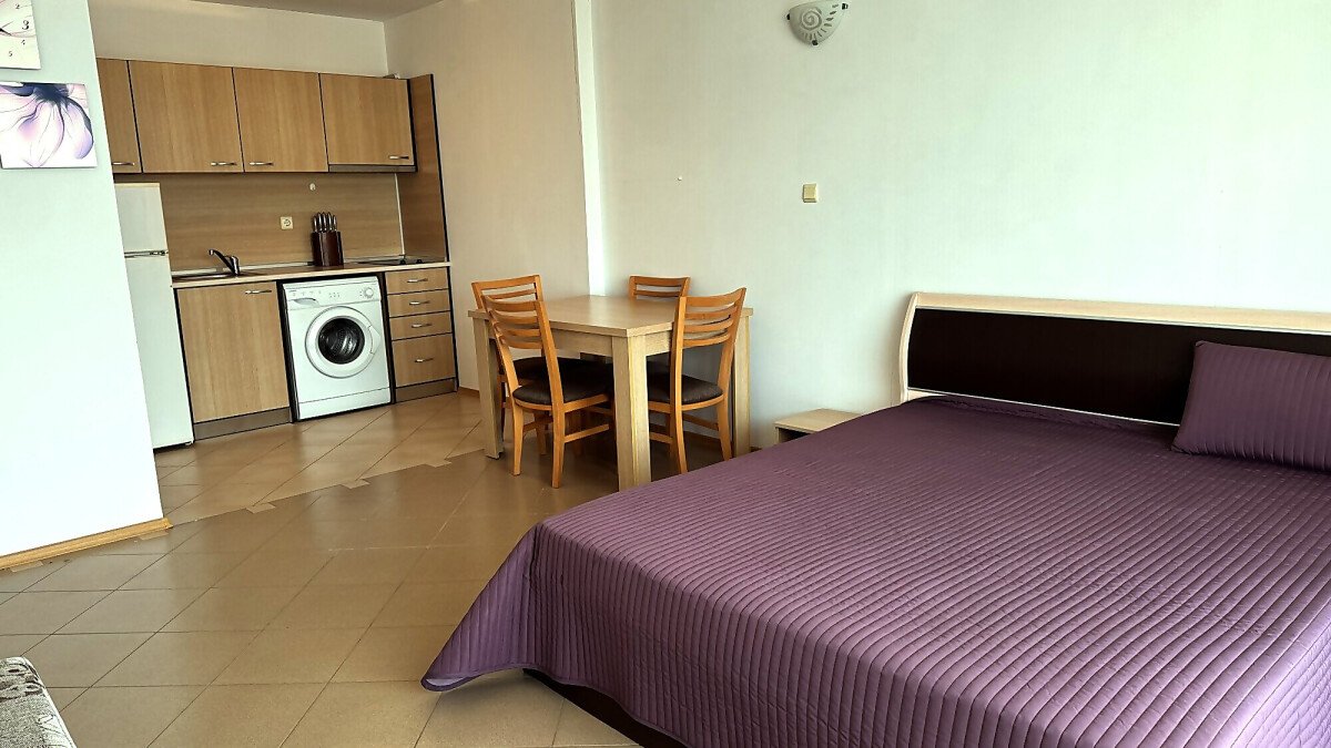 Предлагаме за продажба просторен двустаен апартамент с гледка към басейна в комплекс „Гранд Камелия“, разположен в западната част на курорта Слънчев бряг, в оживен район, на 600 метра разстояние от плажната ивица. В близост има всичко необходимо – голям супермаркет, целогодишен ресторант, автогара, аптека, банка.