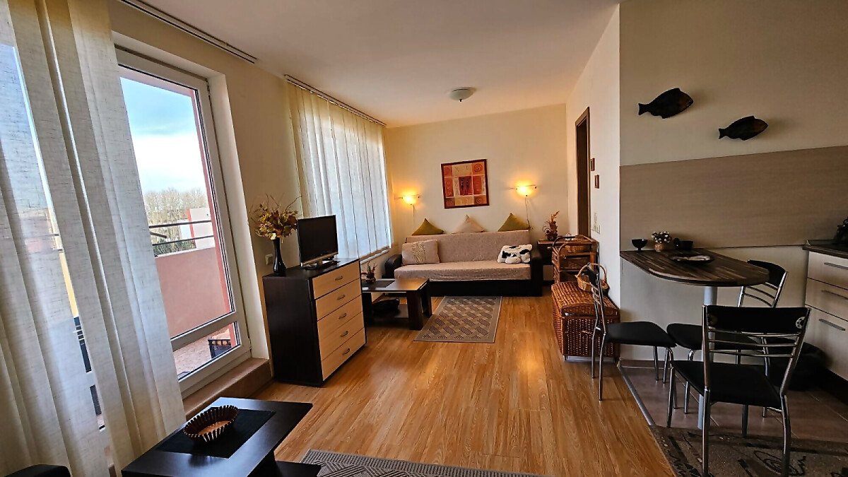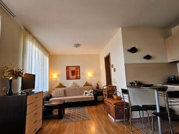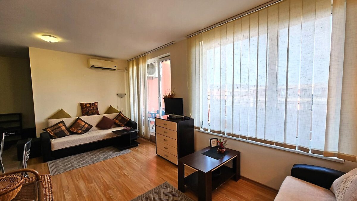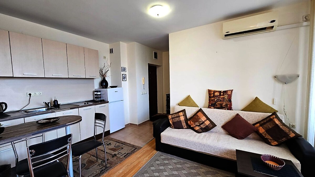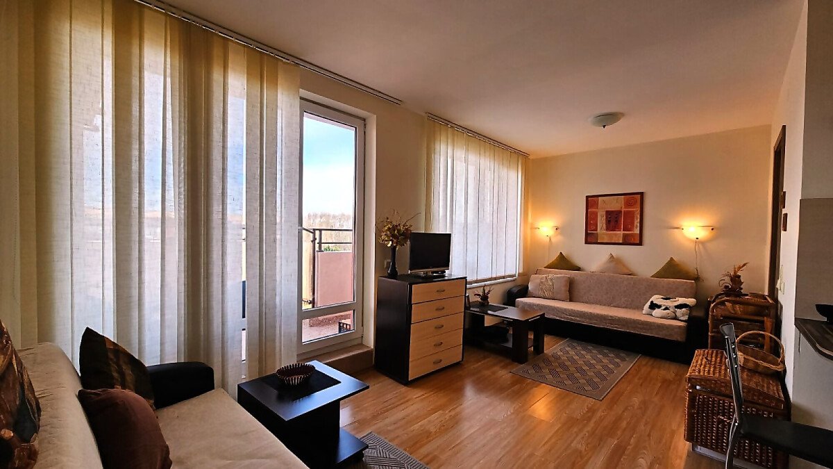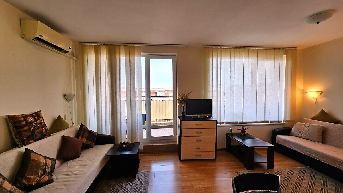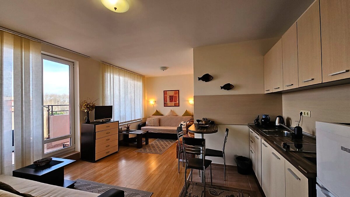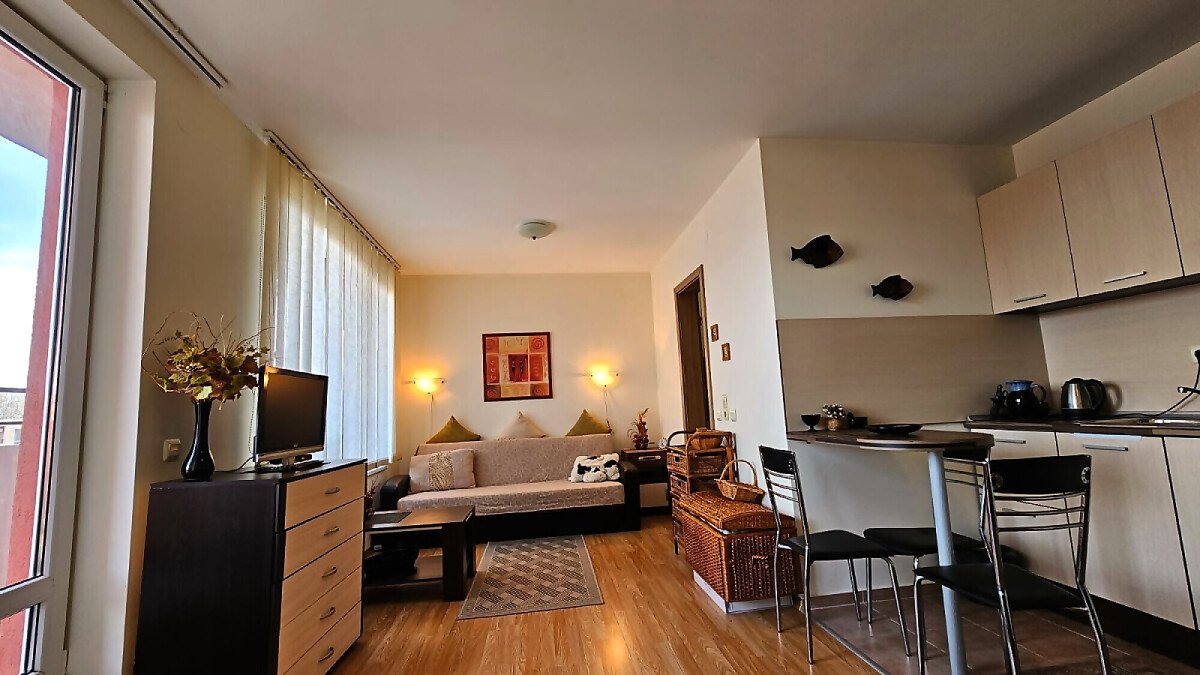 Предлагаме за продажба просторно студио в комплекс „Холидей Форт Клуб“, разположен в близост до най-големия аквапарк в курорта Слънчев бряг, на 850 метра разстояние от морето и плажната ивица.