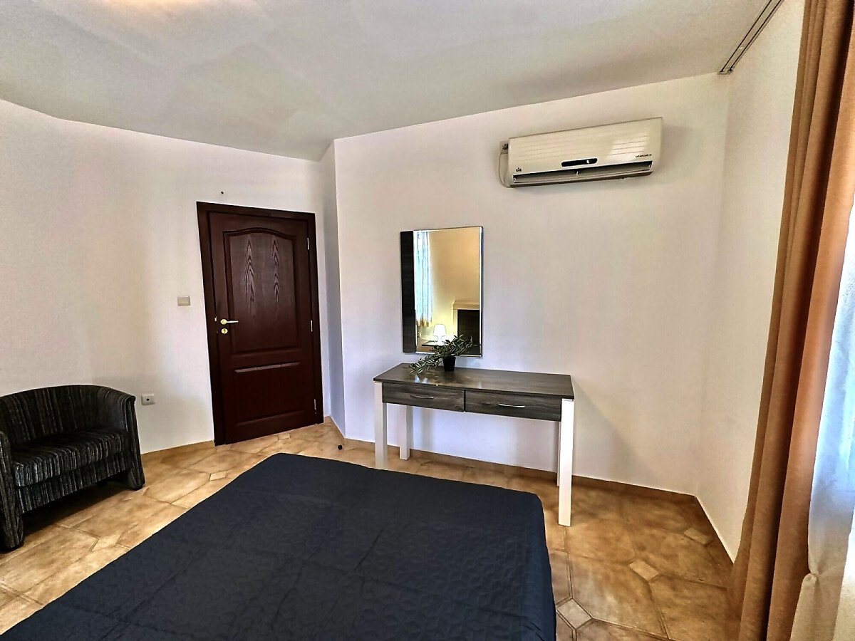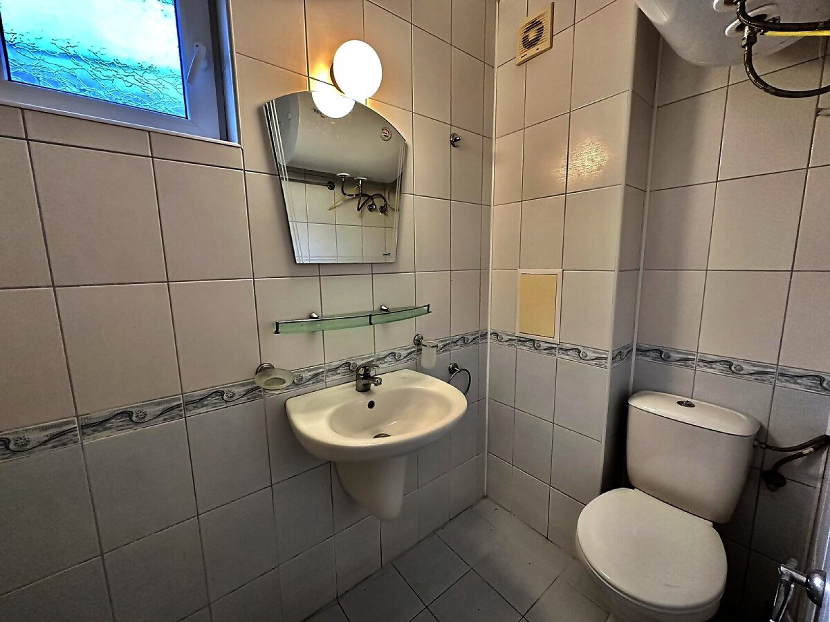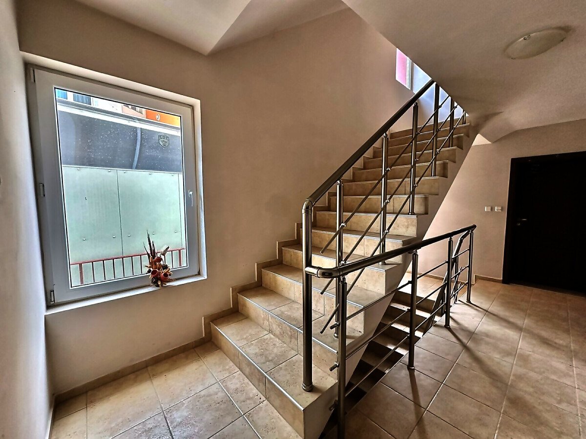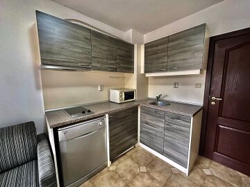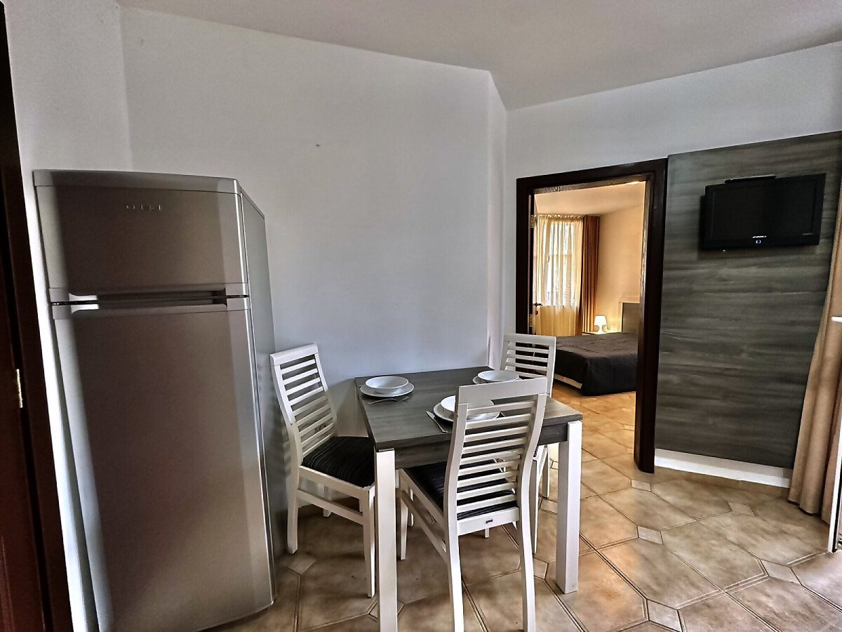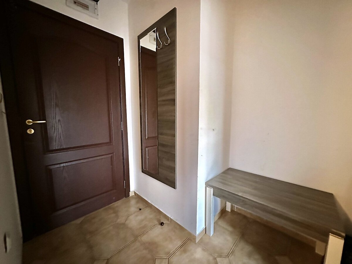 Апартаментът е разположен на първи жилищен етаж и се състои от входно антре, малка всекидневна с оборудван кухненски бокс и зона за хранене, уютна спалня, баня с тоалетна, балкон с изглед към двора.