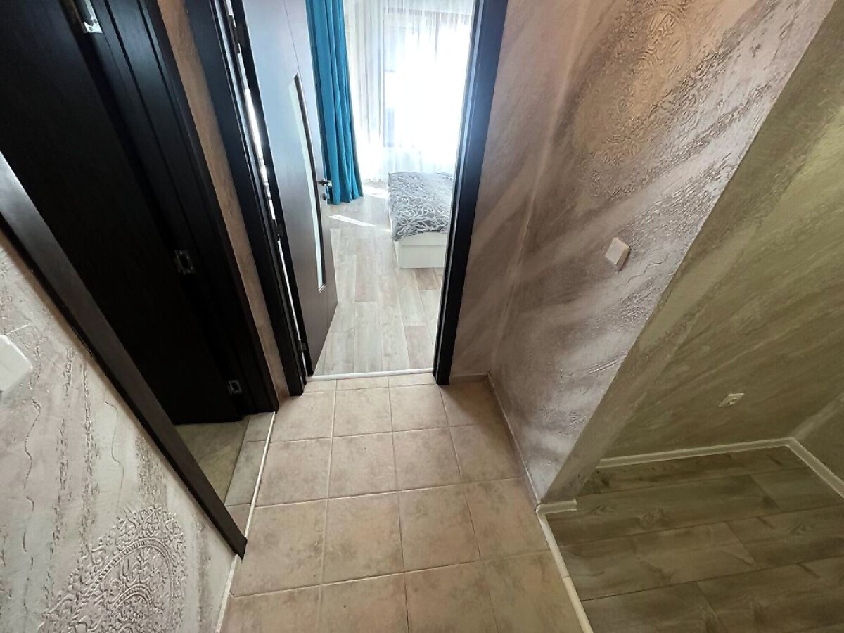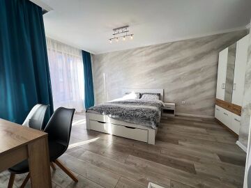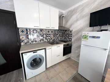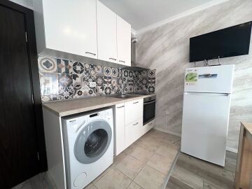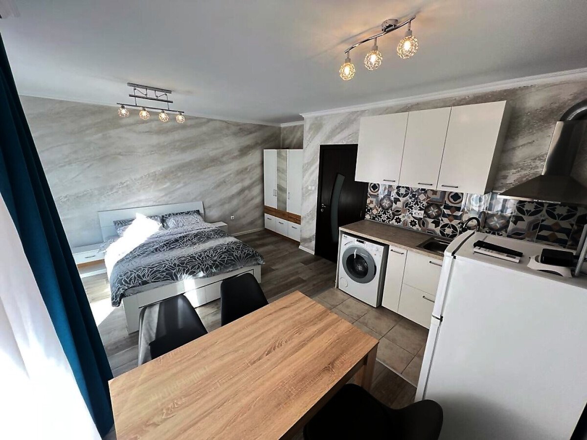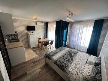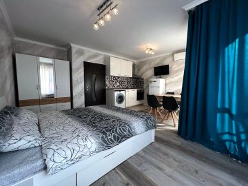 Студиото се продава в отлично състояние, след ремонт, с ново обзавеждане и оборудване, със следното разпределение – входно антре, малък склад, всекидневна с кухненски бокс, зона за хранене и обособена спалня, баня с тоалетна, тераса.