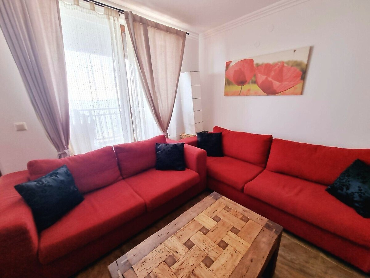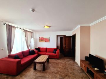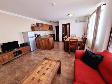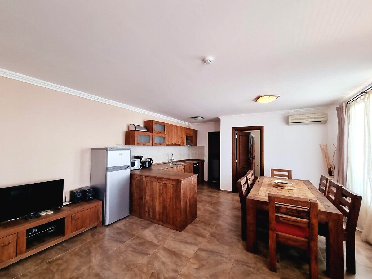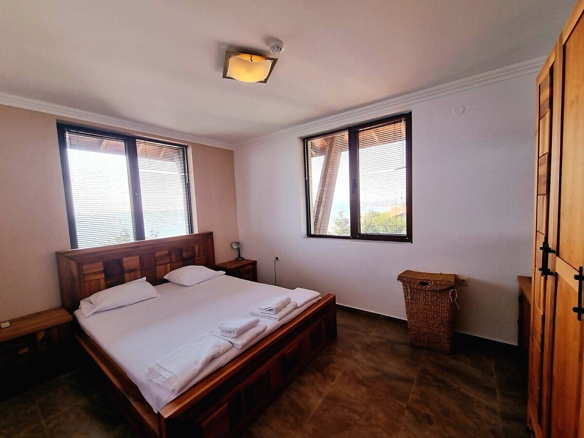 Апартаментът се продава в идеално състояние, напълно обзаведен и оборудван, със следното разпределение – просторна всекидневна с обособен кухненски кът и трапезария, две бани с тоалетна, три спални, балкон с невероятна панорамна гледка към морето, залива и стария град Несебър.