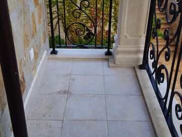 Жилището е просторно, с мраморни плочки на пода, а терасата предлага прекрасен изглед.