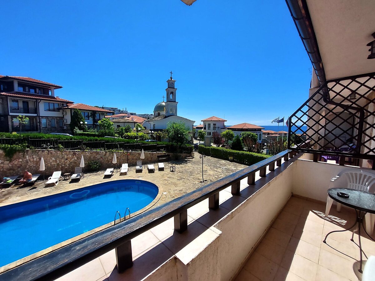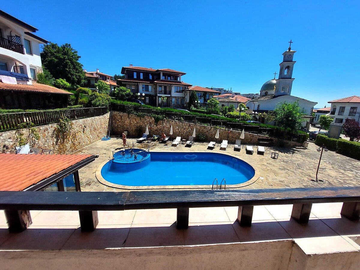 Предлагаме за продажба прекрасен двустаен апартамент с красива гледка към морето и към басейна в комплекс „Камбани 3“, разположен само на 200 метра от плажната ивица в елитния курорт Свети Влас. На пешеходно разстояние е и централната част на курорта, където може да откриете и да се насладите на разнообразие от ресторанти, магазини, летни атракции, кафенета и барове.