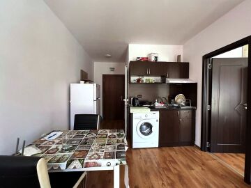 Предлагаме за продажба светъл двустаен апартамент в комплекс „Гербер Резиденс 4“, разположен в Слънчев бряг, един от най-известните и предпочитани курорти на българското крайбрежие. На територията на комплекса има всичко необходимо както за летен отдих, така и за постоянно живеене – външен плувен басейн с детска секция, място за релакс и слънчеви бани с удобни шезлонги, детска площадка, озеленена територия, денонощна охрана, затворен паркинг, асансьор, поддръжка.