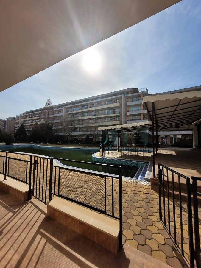 Предлагаме за продажба тристаен апартамент с гледка към басейна в комплекс „Гранд Камелия“, разположен в западната част на Слънчев бряг, един от най-предпочитаните морски курорти на българското крайбрежие. В непосредствена близост има голям супермаркет, целогодишен ресторант, аптека, автобусни спирки, а на 600 метра разстояние е плажната ивица.