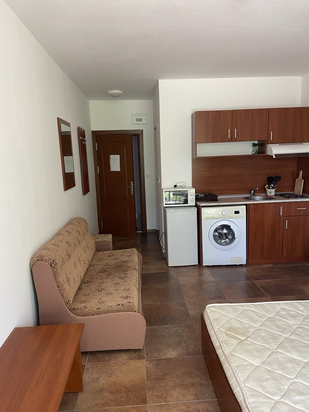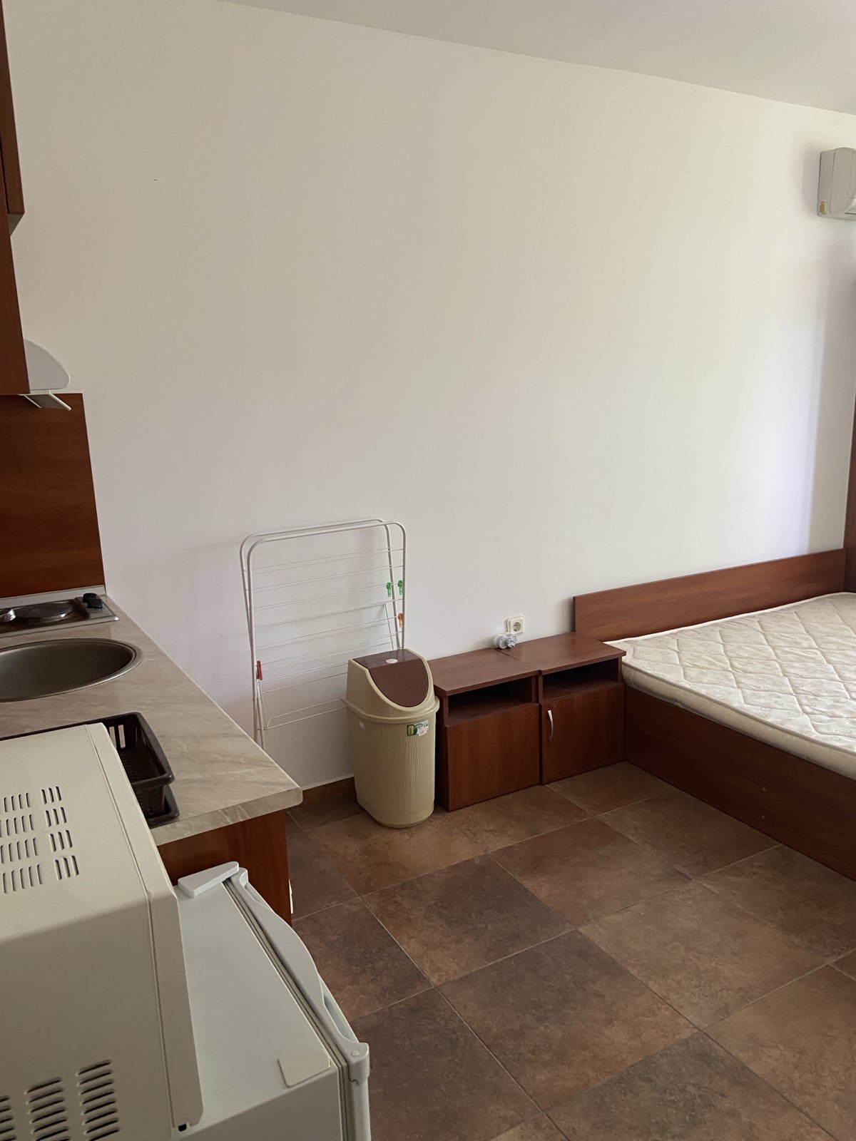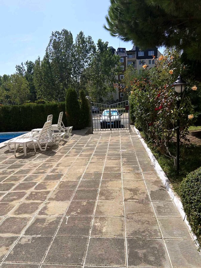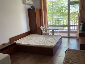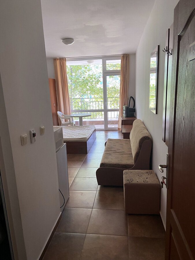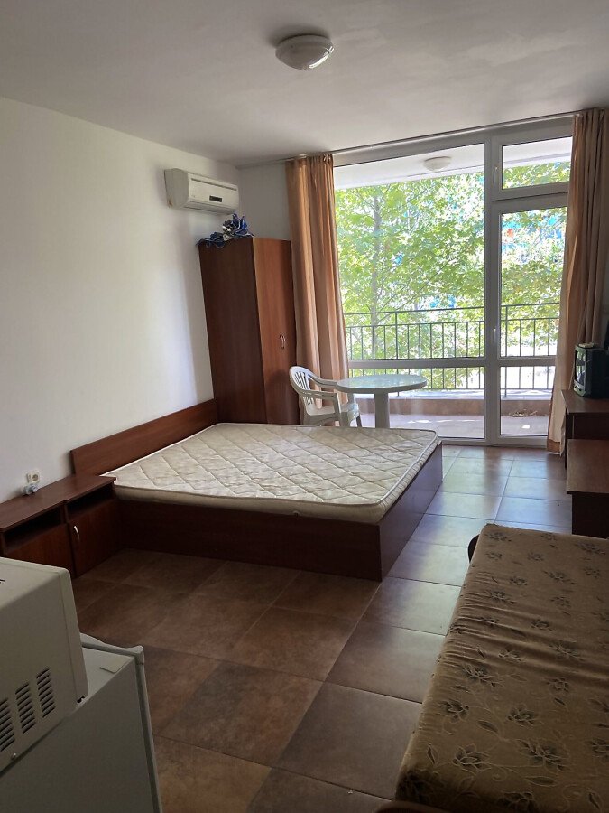 Ние Ви предлагаме да станете собственик на слънчево студио с гледка към двора в този комплекс. Имотът е с площ 36 кв.м. и следното разпределение – входно антре, просторна всекидневна с оборудван кухненски бокс и обособена спалня, баня с тоалетна и вана, тераса с изглед към озеленения двор.