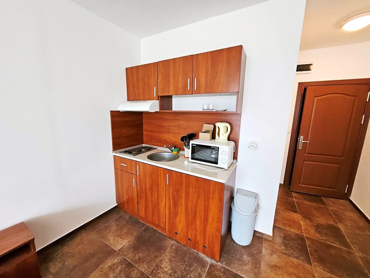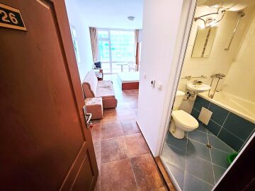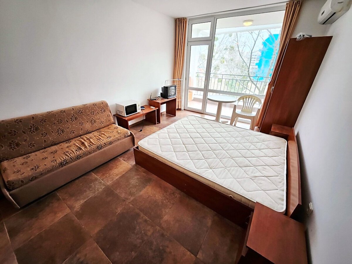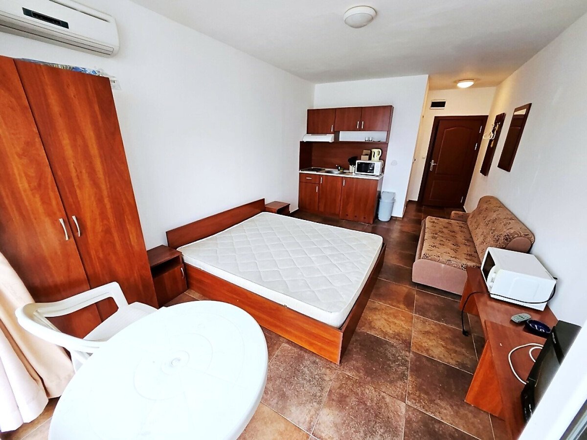 Предлагаме за продажба чудесно студио в комплекс „Абелия Резидънс“, разположен в централната част на Слънчев бряг, един от най-атрактивните морски курорти. В непосредствена близост има голям супермаркет, целогодишен ресторант, разнообразие от магазини, аптека, банка, удобни автобусни спирки. Само на 400 метра разстояние може да се насладите на пясъчната плажна ивица и многобройните плажни барове.