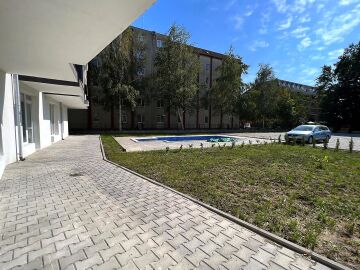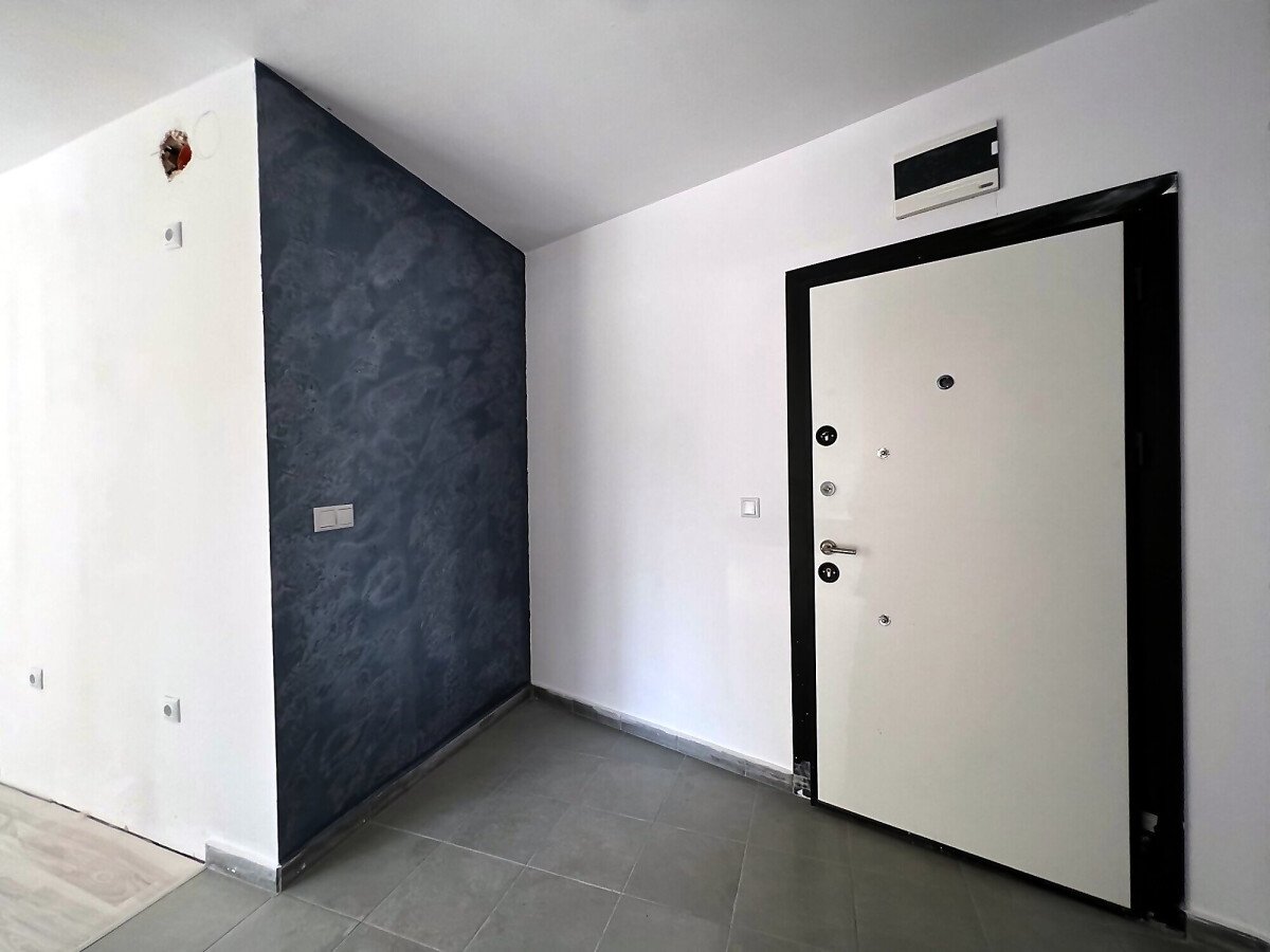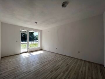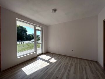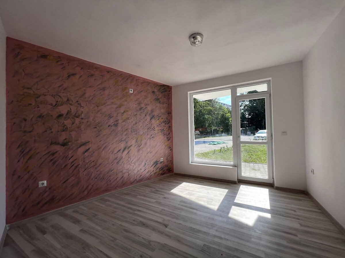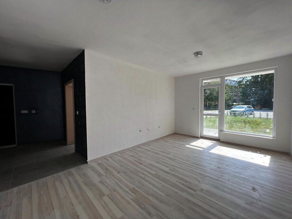 Имотът е разположен на партерен етаж и се състои от входно антре, всекидневна, спалня, баня с тоалетна. От двете стаи има директен изход към общата територия на комплекса.