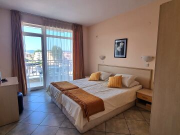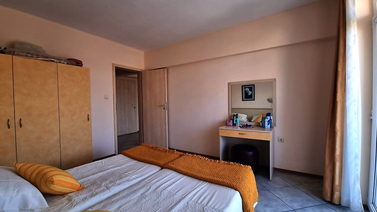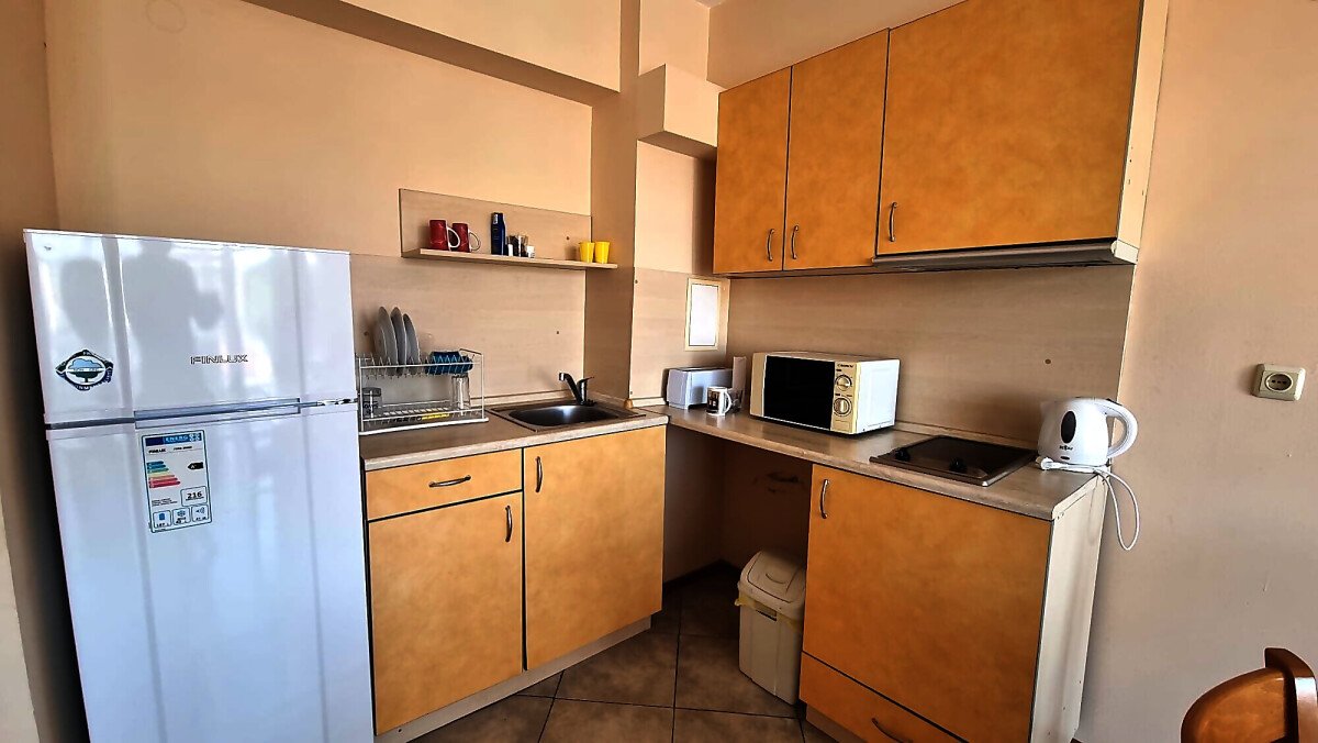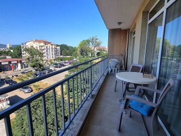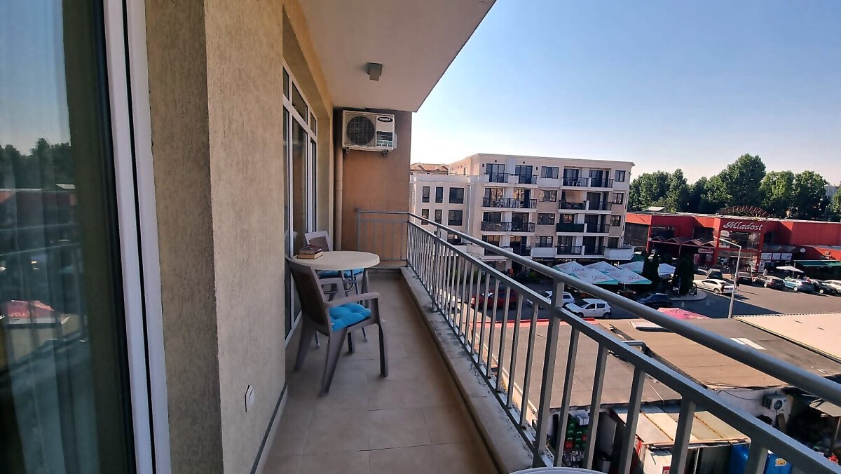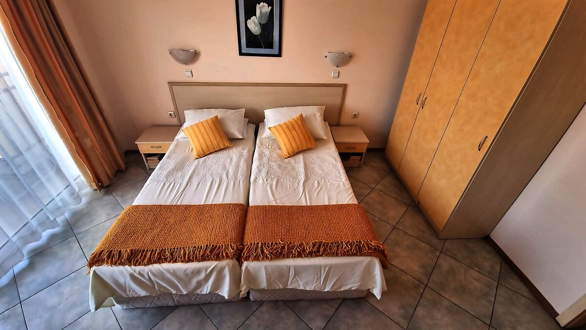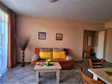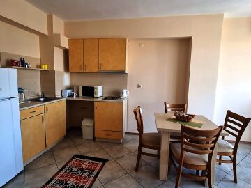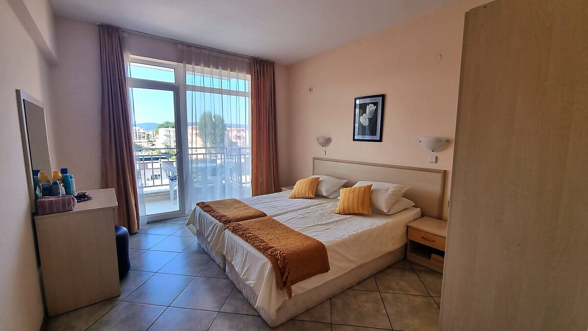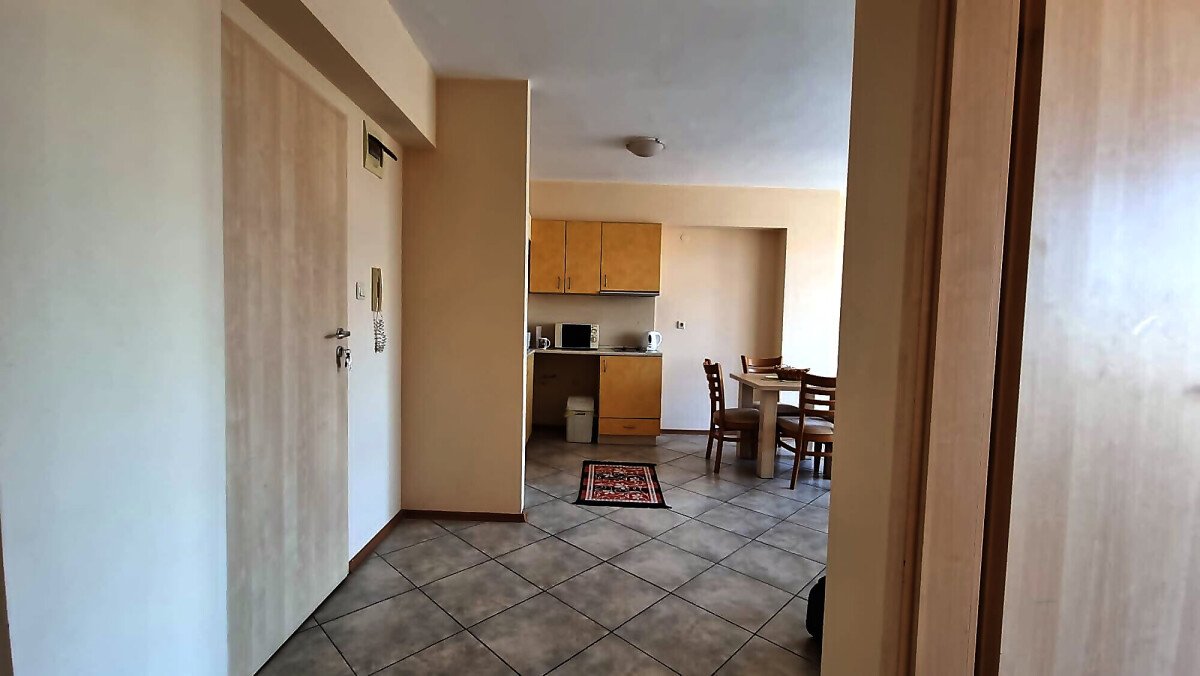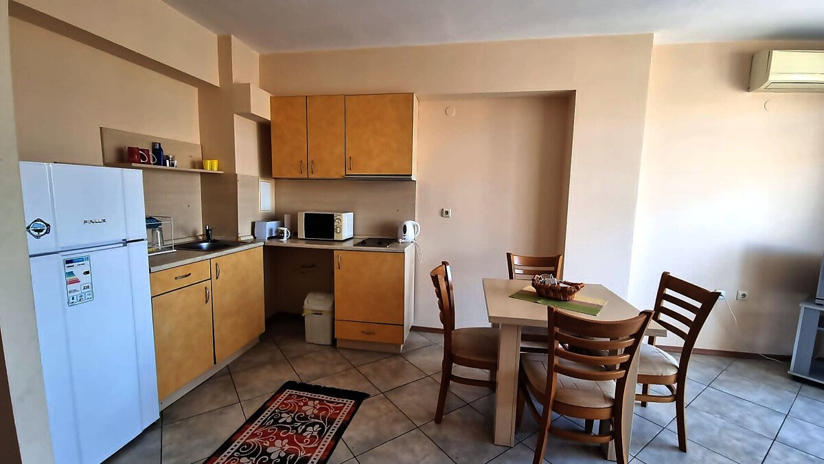 Апартаментът се намира на четвърти, предпоследен етаж и има следното разпределение – входно антре, голяма всекидневна с обособен кухненски бокс и трапезария, баня с тоалетна и душ кабина, уютна спалня, просторен балкон с изглед към курорта.