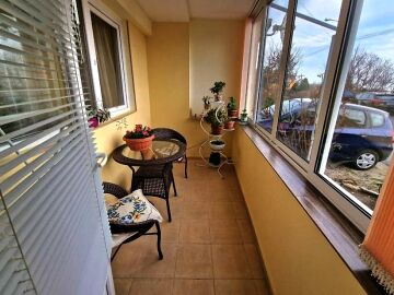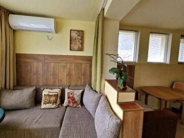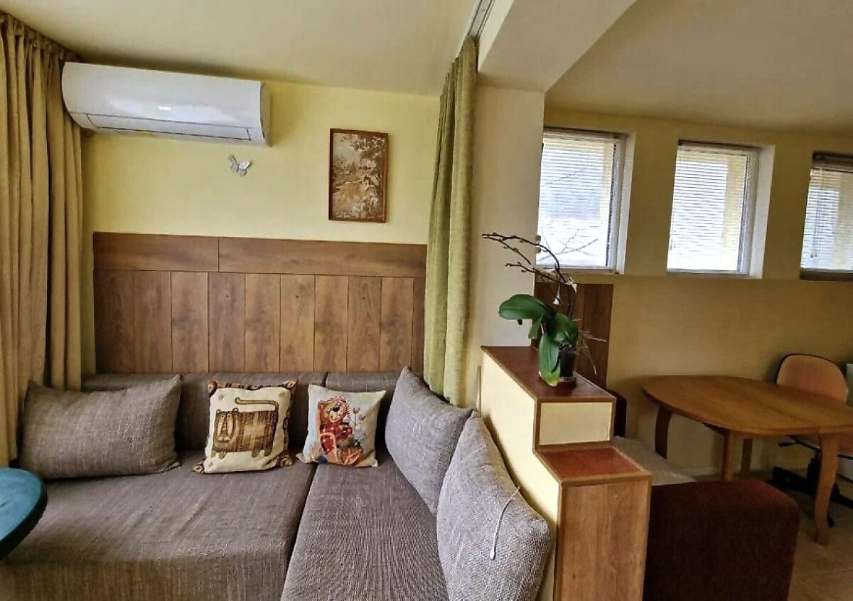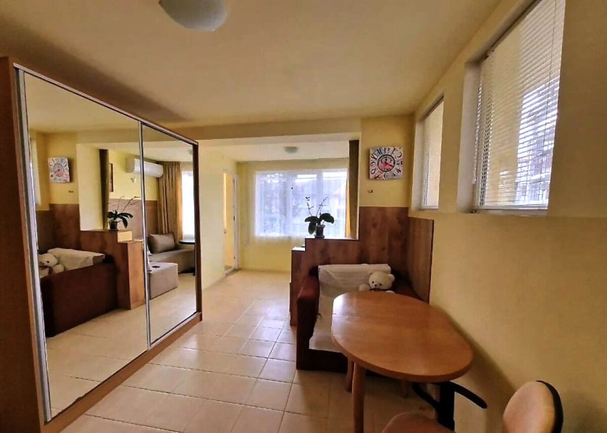 Апартаментът е разположен на партерен етаж, със следното разпределение – всекидневна с трапезария и оборудван кухненски бокс, спалня, баня с тоалетна, закрита тераса с частичен изглед към морето.