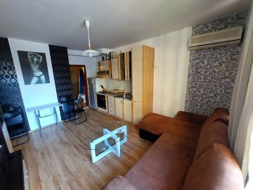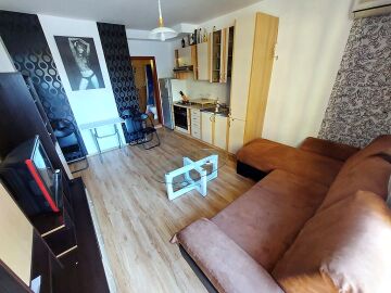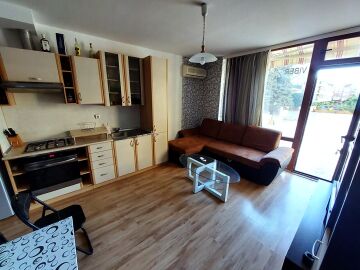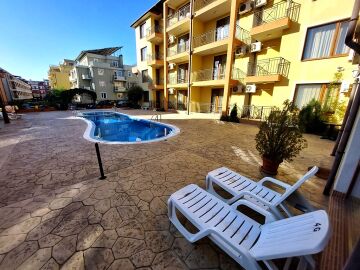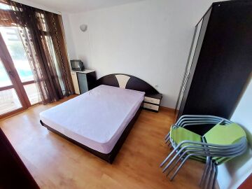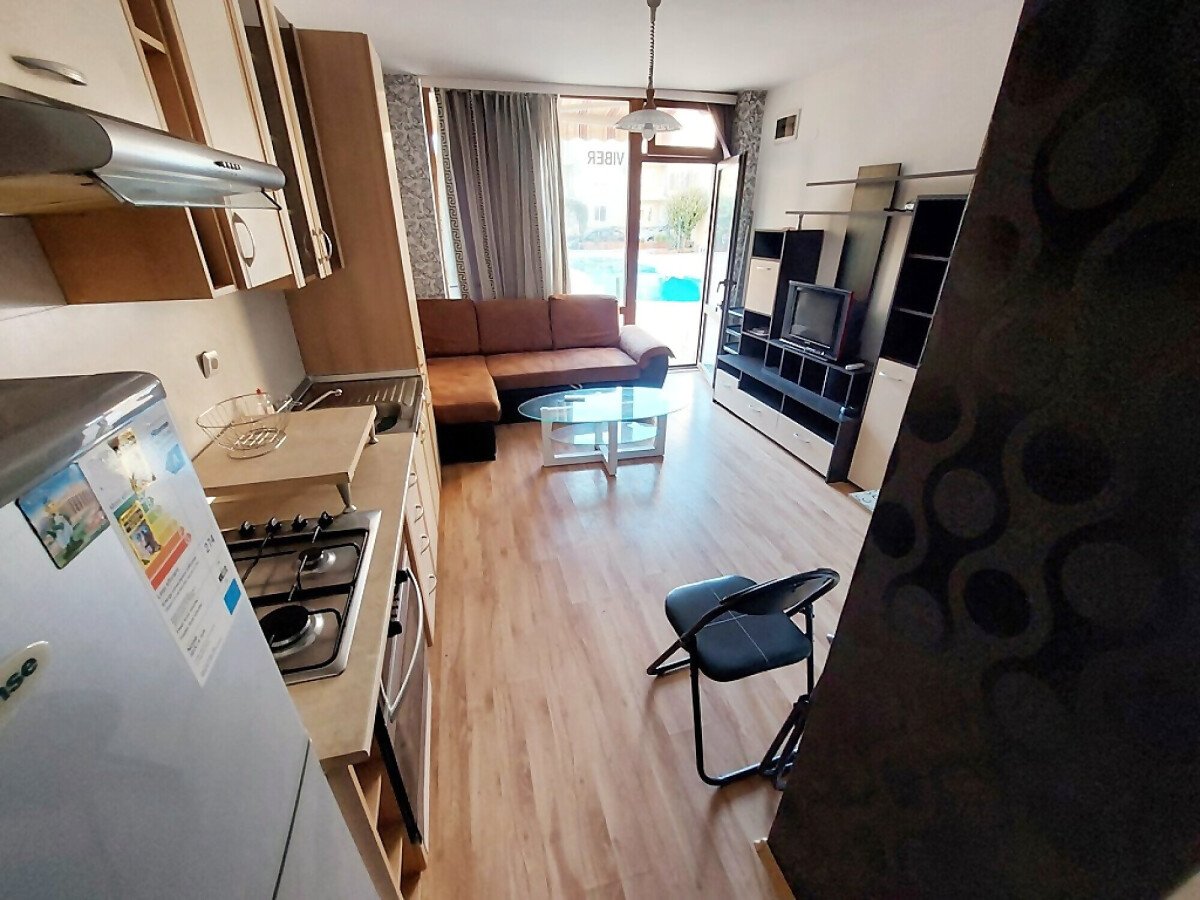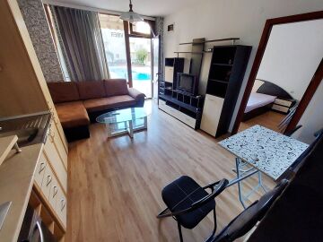 Апартаментът е на партерен етаж, със следното разпределение – всекидневна с оборудван кухненски бокс и кът за хранене, спалня, баня с тоалетна. От имота има директен изход към басейна и общите части на комплекса.