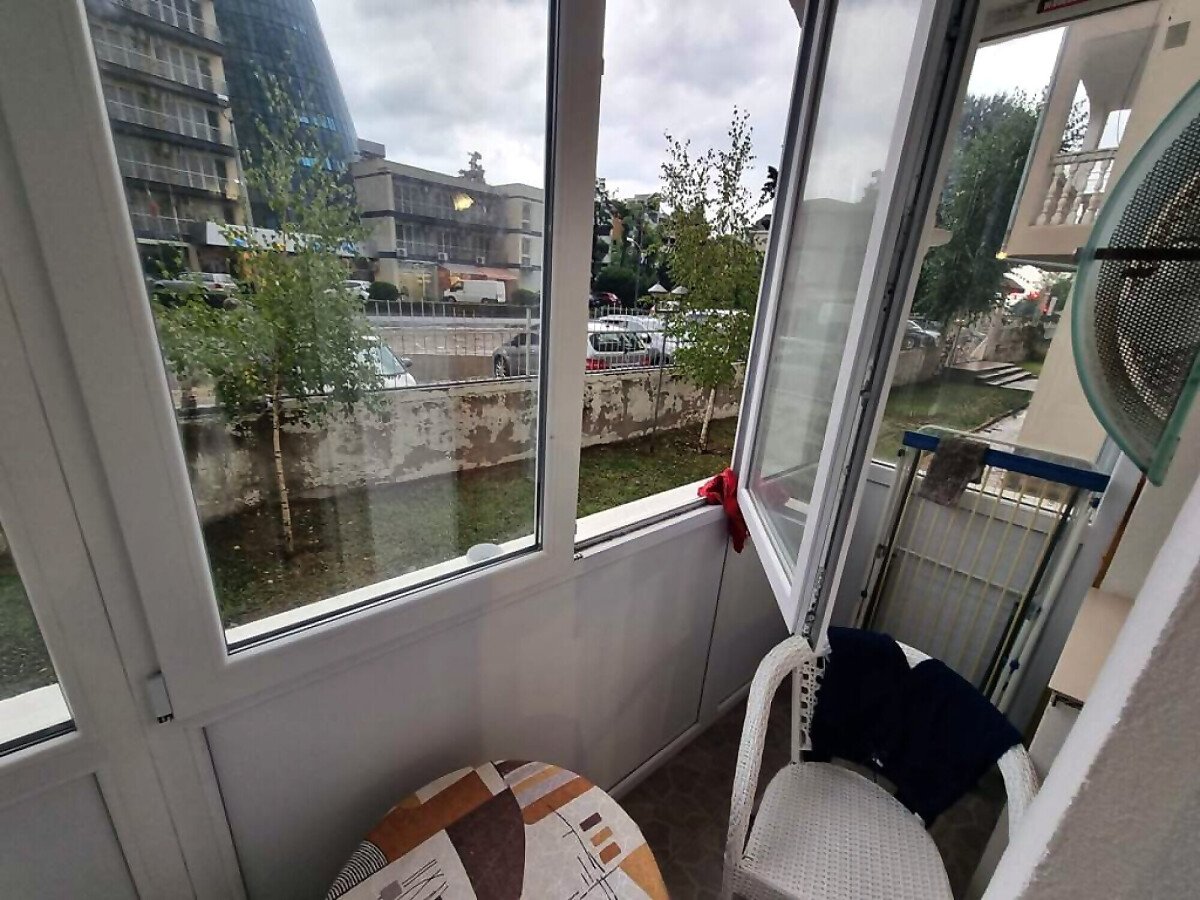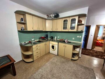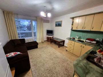 Апартаментът е разположен на партерен етаж и се състои от входно антре, всекидневна с оборудван кухненски бокс, две спални, баня с тоалетна и вана, два балкона с изглед към вътрешната част на комплекса.