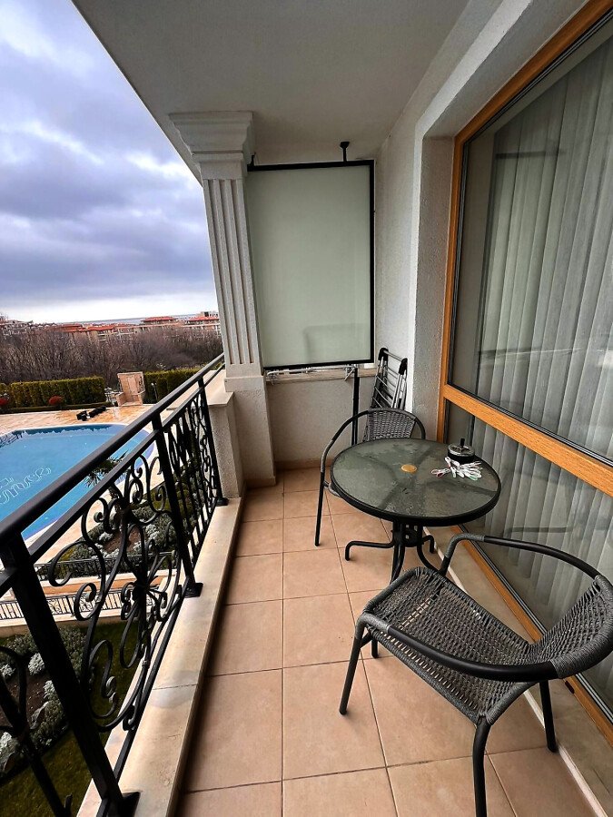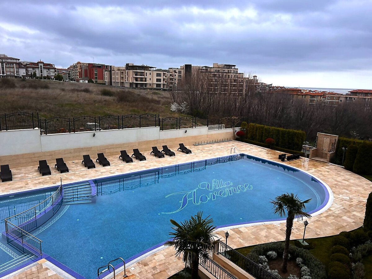 Предлагаме за продажба страхотен двустаен апартамент с гледка към басейна, морето и планината в очарователния комплекс „Вила Флоренция“, разположен в Свети Влас, елитно курортно градче. Комплексът се намира на 100 метра от плажната ивица с фин златист пясък и чиста морска вода, както и на 15 минути пешеходно разстояние от известното яхтено пристанище „Марина Диневи“.