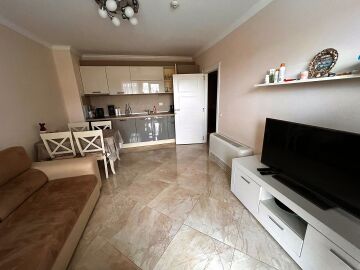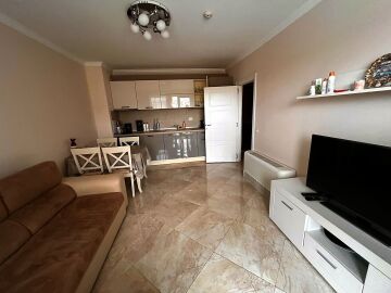 Апартаментът е на трети етажи, красиво обзаведен и качествено оборудван, със следното разпределение – входно антре, всекидневна с обособен кът за хранене и кухненски бокс, уютна спалня, баня с тоалетна и душ кабина, тераса с чудесна гледка към басейна, морето и планината.
