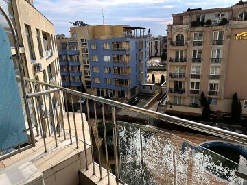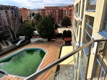 Апартаментът е на пети етаж в сграда с асансьор и има следното разпределение – всекидневна с оборудван кухненски бокс и обособена спалня, баня с тоалетна и душ кабина, балкон с чудесна гледка към басейна и вътрешната територия на комплекса.