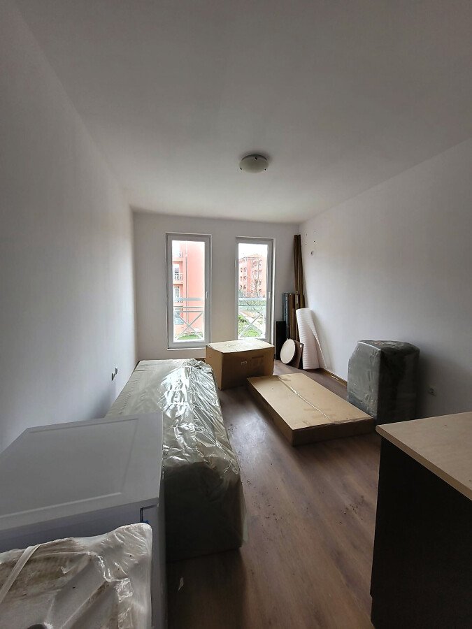 Имотът е разположен на трети етаж и има следното разпределение – входно антре, просторна всекидневна с кухненски бокс, баня с тоалетна. Апартаментът ще бъде напълно завършен, обзаведен и оборудван, готов за живеене.