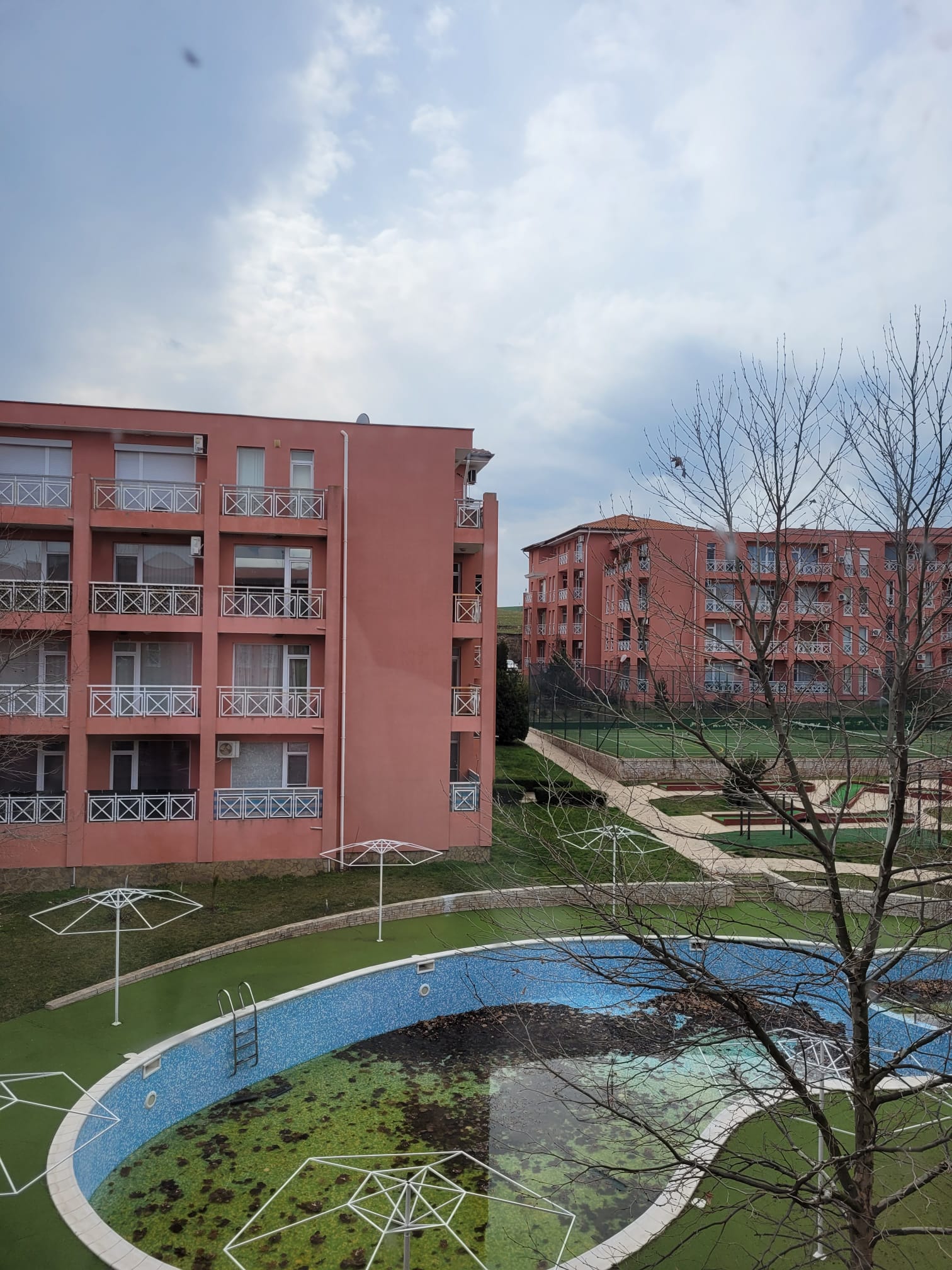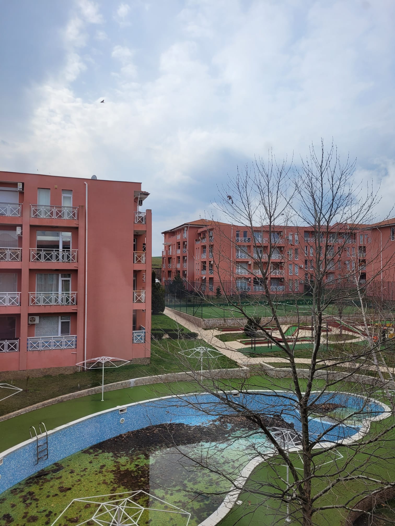 Предлагаме за продажба студио с гледка към басейна в големия жилищен комплекс „Съни Дей 6“, част от веригата „Съни Дей“, разположени в равнинна местност, в спокоен и уединен район близо до село Тънково и на няколко километра от морския курорт Слънчев бряг. Там може да се насладите на плаж с фин златен пясък, както и на разнообразие от ресторанти, летни атракции, магазини, клубове.
