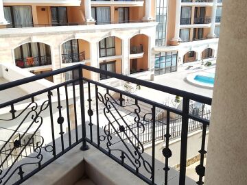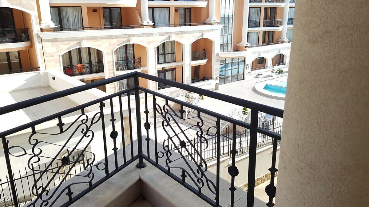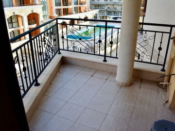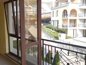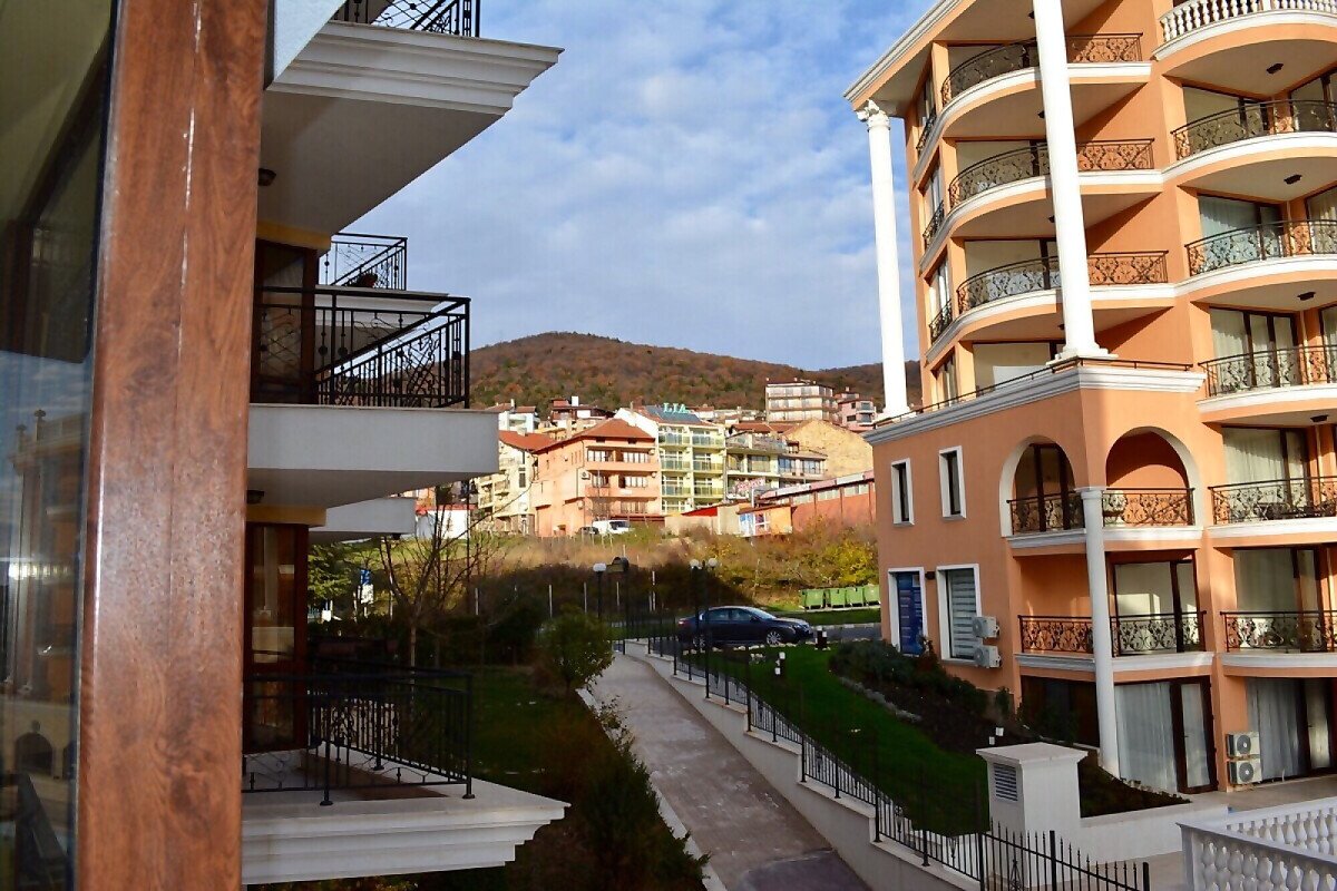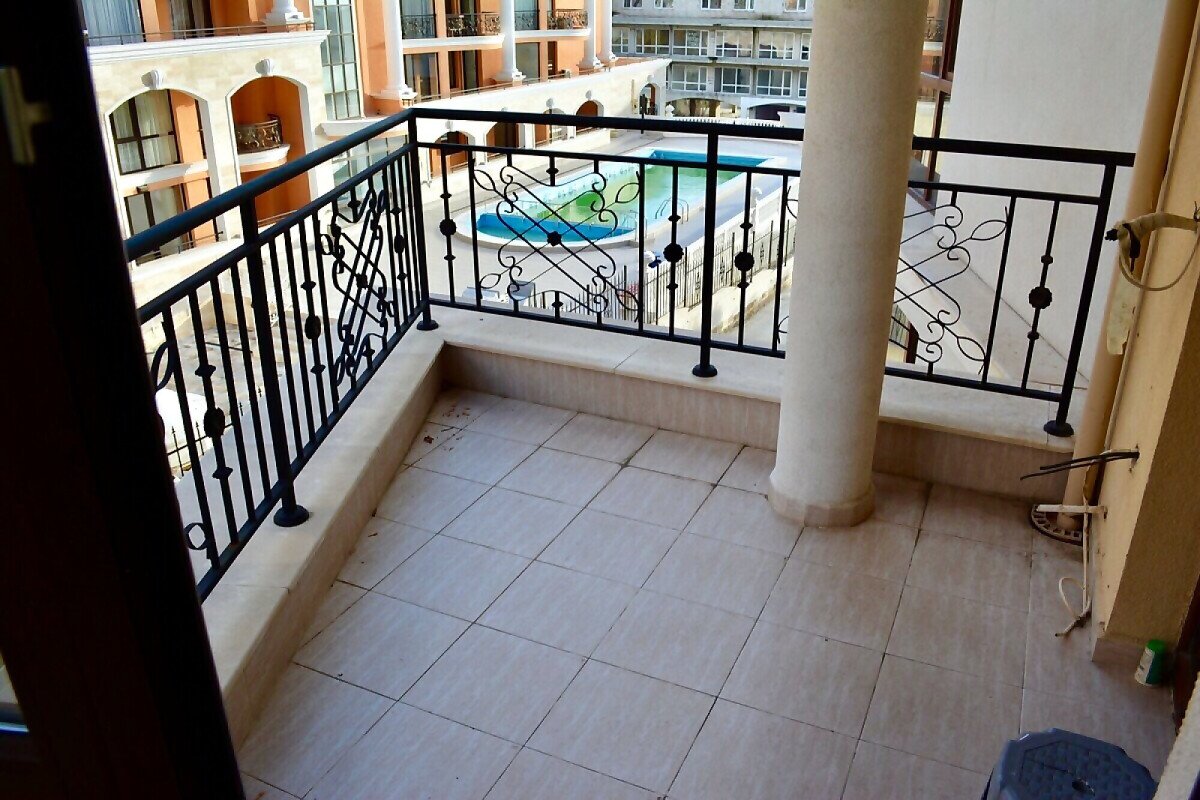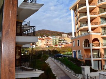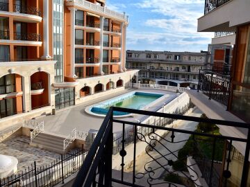 Предлагаме за продажба светъл двустаен апартамент с гледка към басейна и към планината в комплекс „Вила Калабрия“, разположен в Свети Влас, предпочитан морски курорт, само на 200 метра от плажната ивица.