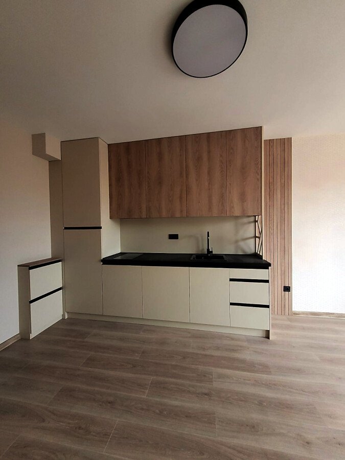 Апартаментът е на първи жилищен етаж, със следното разпределение – просторна всекидневна с кухненски бокс, уютна спалня, баня с тоалетна и душ кабина, балкон с гледка към курорта. Жилището ще бъде напълно обзаведено и завършено, ще има холна част, трапезна маса със столове и шкафове, както и пълно оборудване.