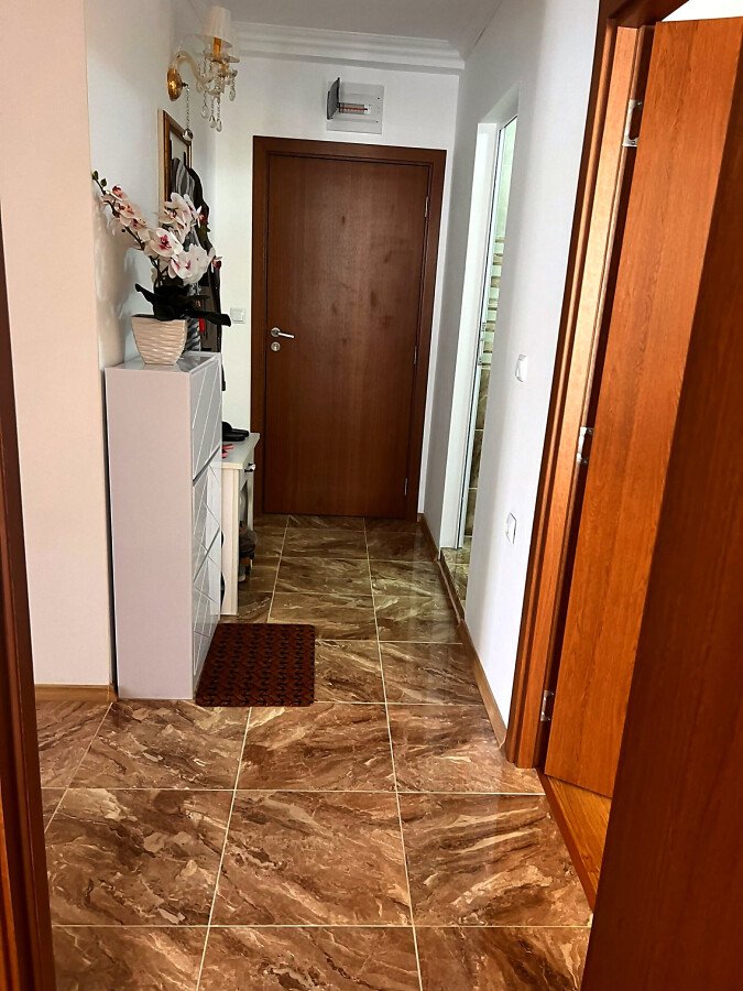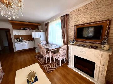 Апартаментът се продава в отлично състояние, луксозно обзаведен и качествено оборудван, със следното разпределение – входно антре, слънчева всекидневна с обособен кухненски бокс и кът за хранене, две спални, баня с тоалетна и душ кабина, коридор, баня с тоалетна и джакузи, две тераси с красива гледка към басейна и озеленената територия на комплекса.