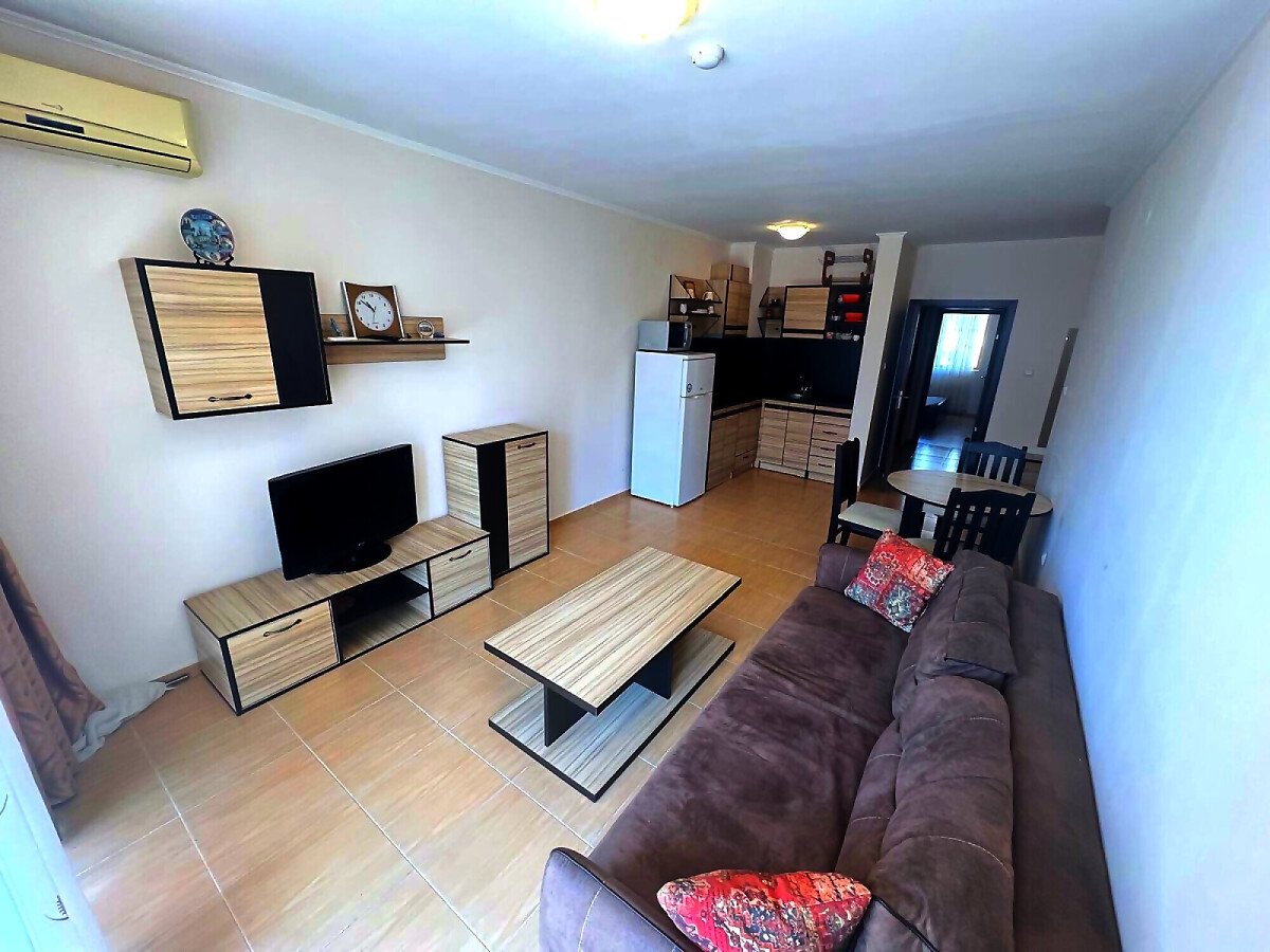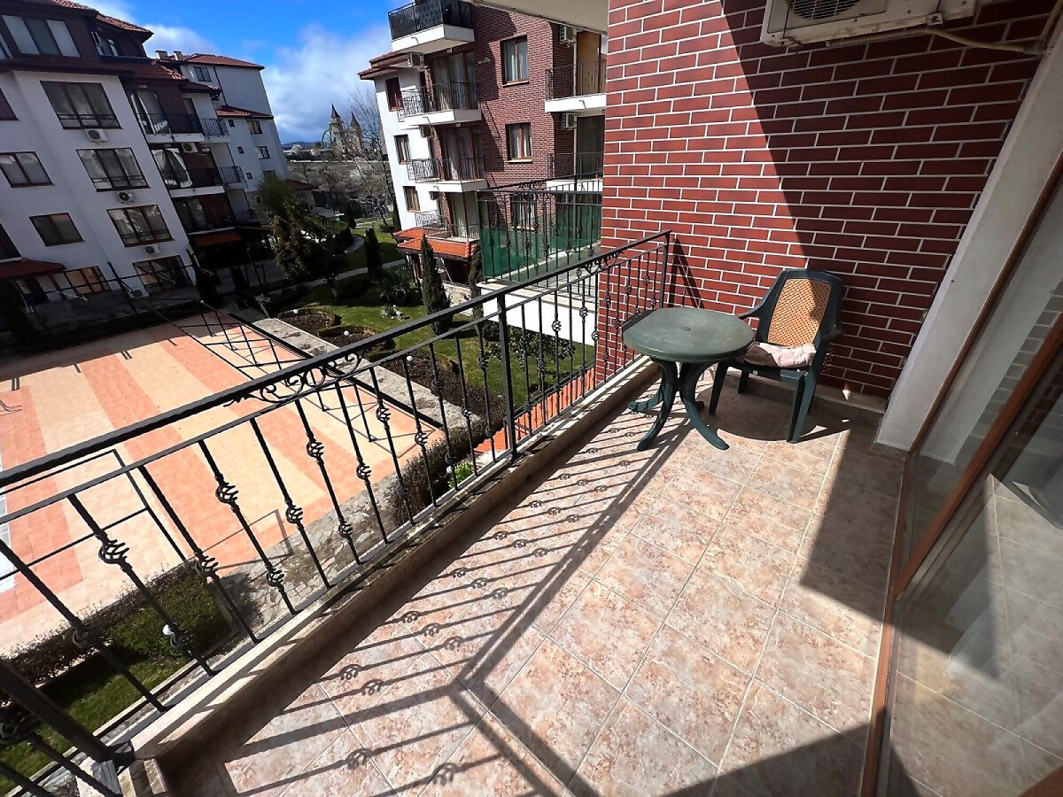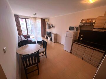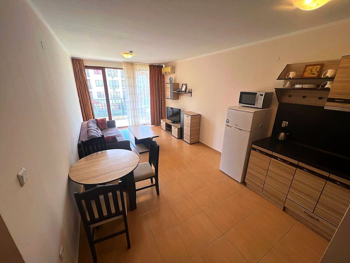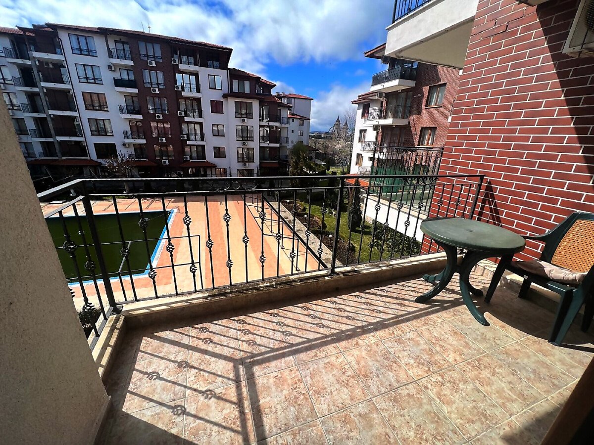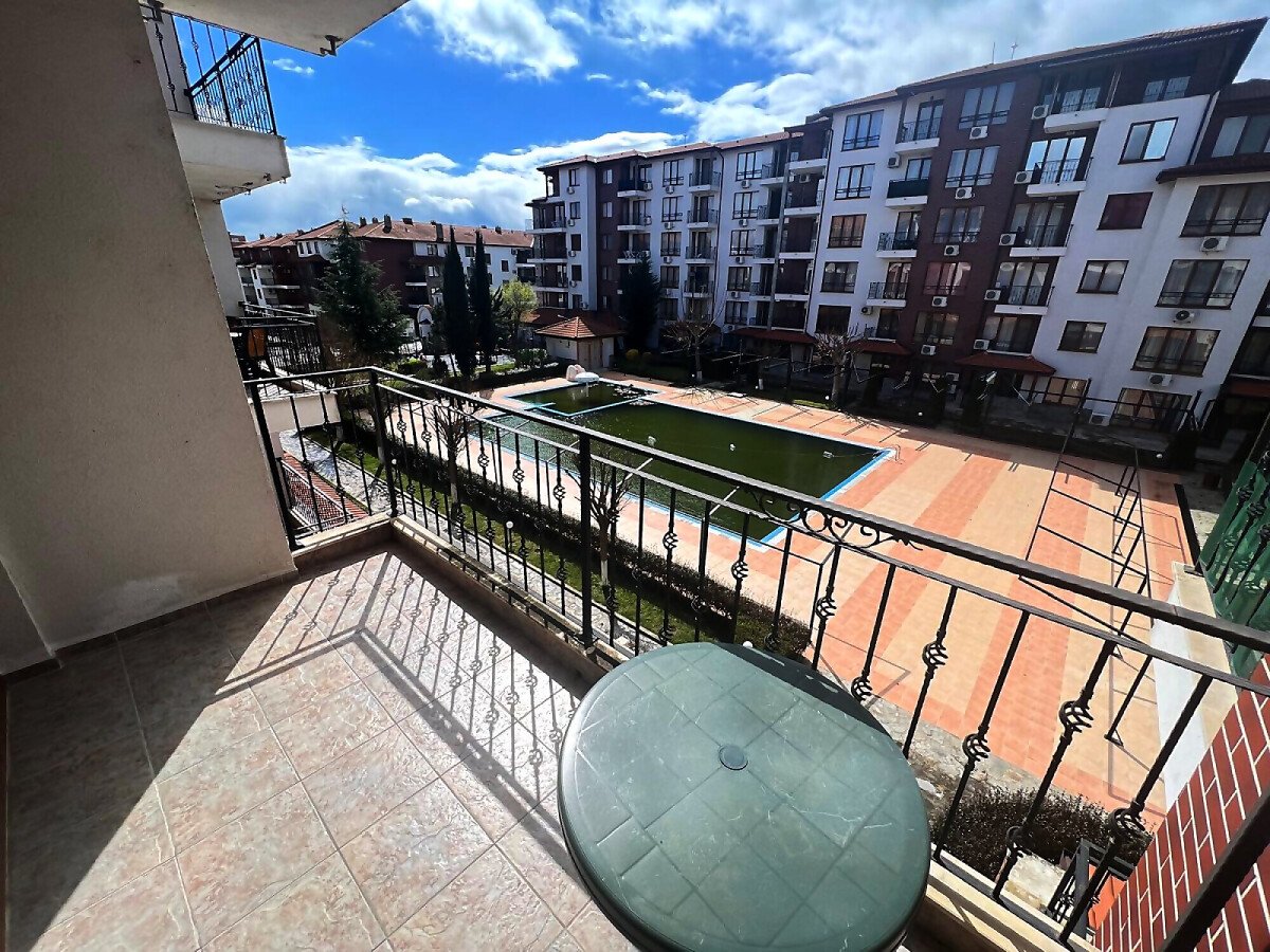 Предлагаме за продажба просторен двустаен апартамент с гледка към басейна в прекрасния жилищен комплекс „Аполон 7“, разположен между курортното селище Равда и град Несебър, на 200 метра разстояние от плажа с фин златист пясък. Районът е с развита инфраструктура и удобни комуникации, в близост има всичко необходимо – аптека, супермаркет, автобусни спирки, магазини, заведения.