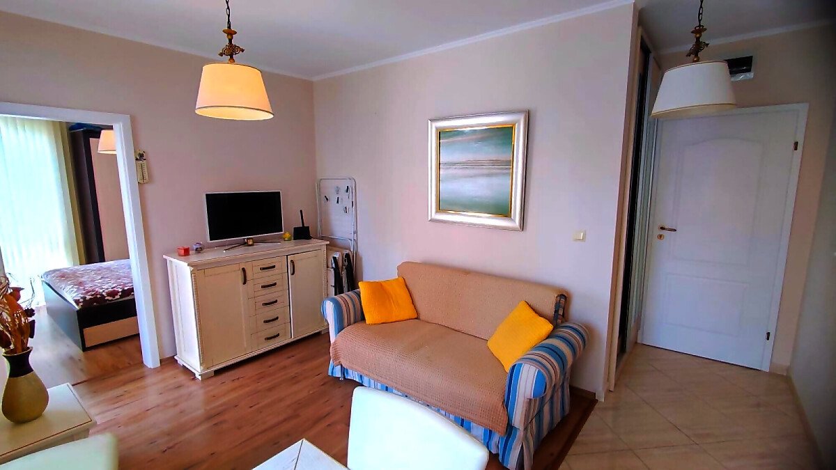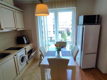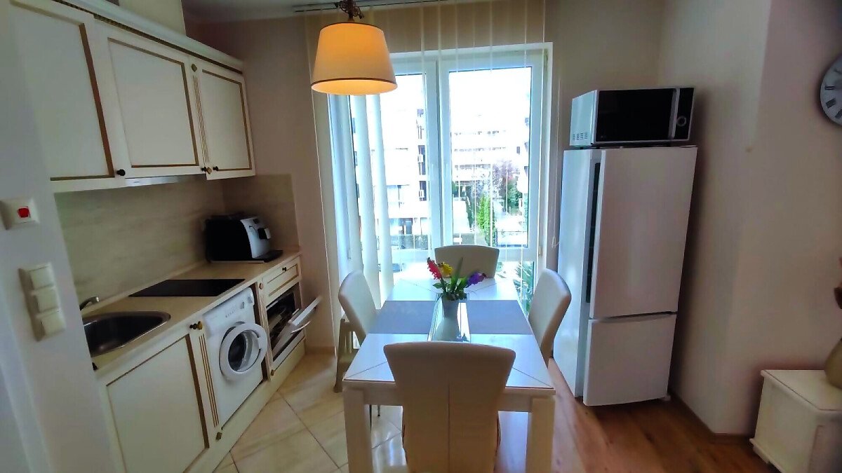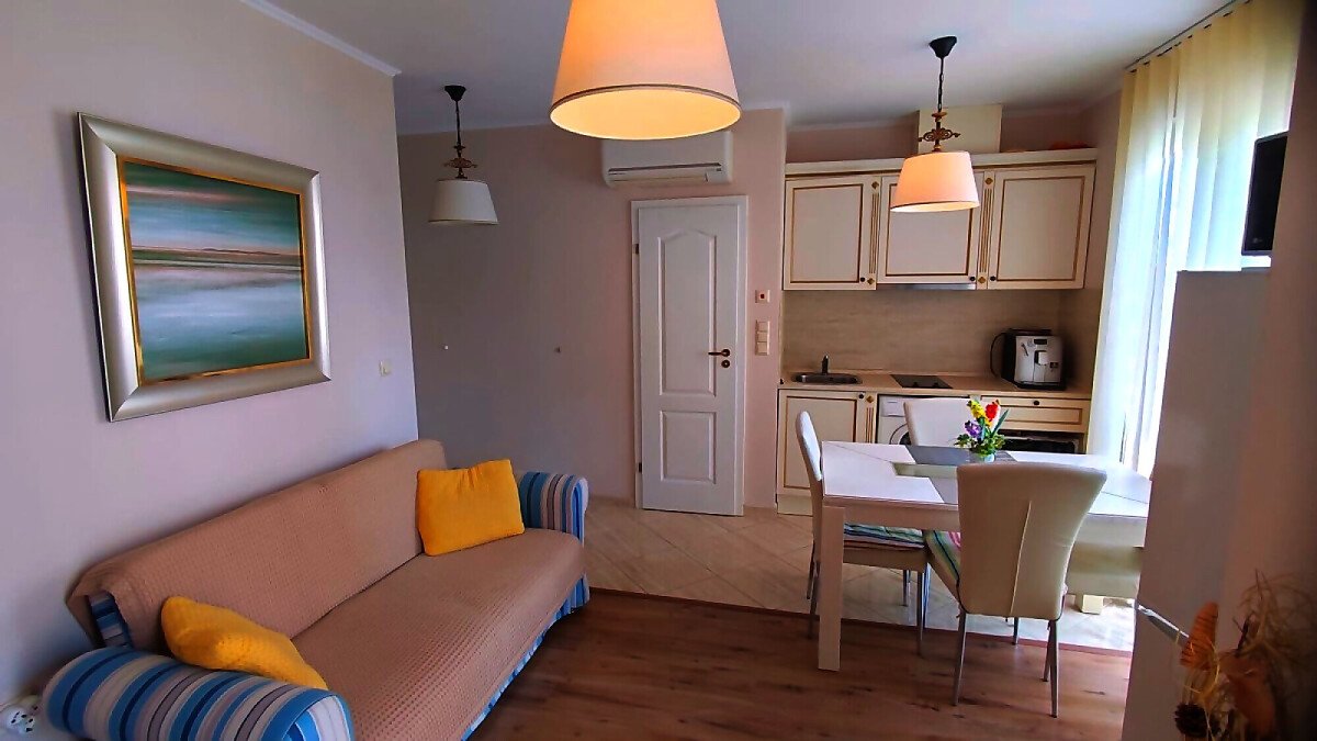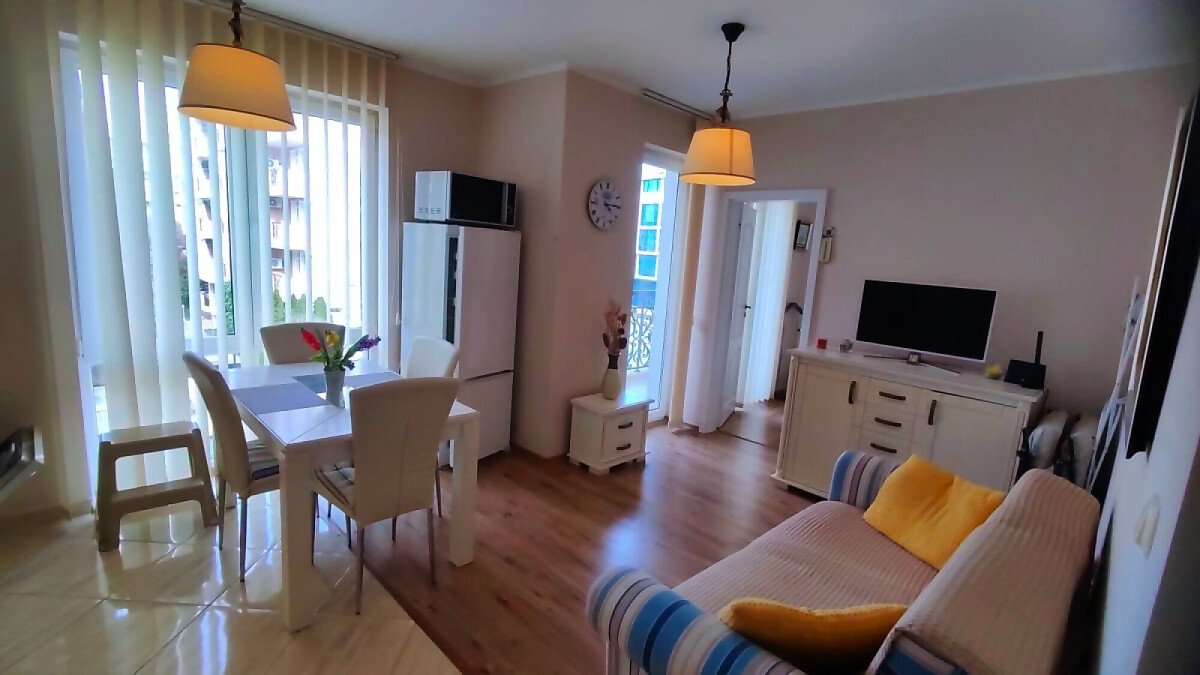 Апартаментът е светъл и много уютен, обзаведен и оборудван, със следното разпределение – входно антре, всекидневна с обособен кухненски бокс и кът за хранене, спалня, баня с тоалетна и душ кабина, балкон.