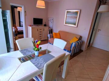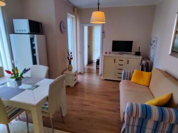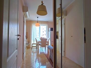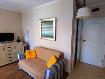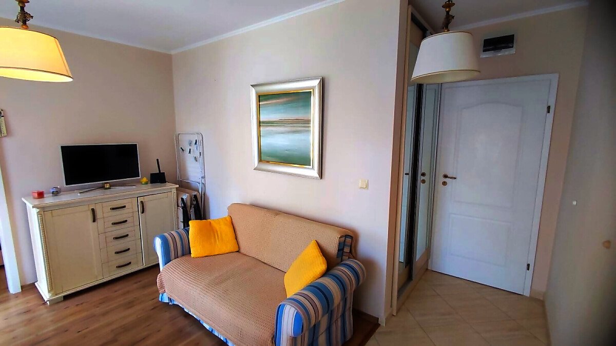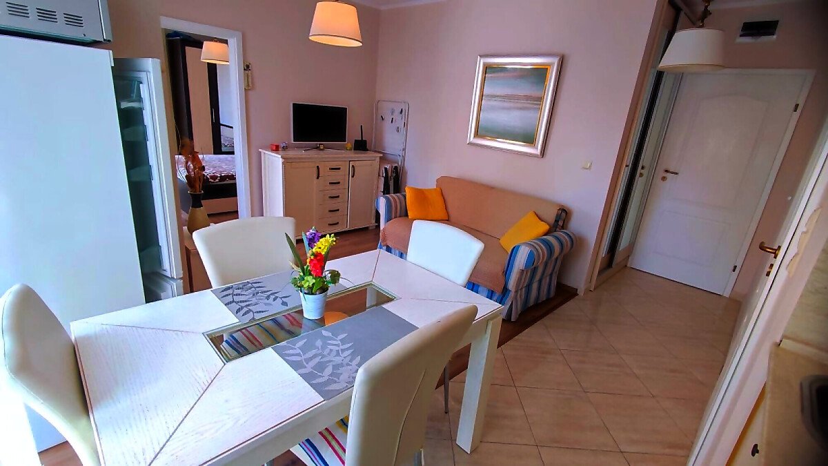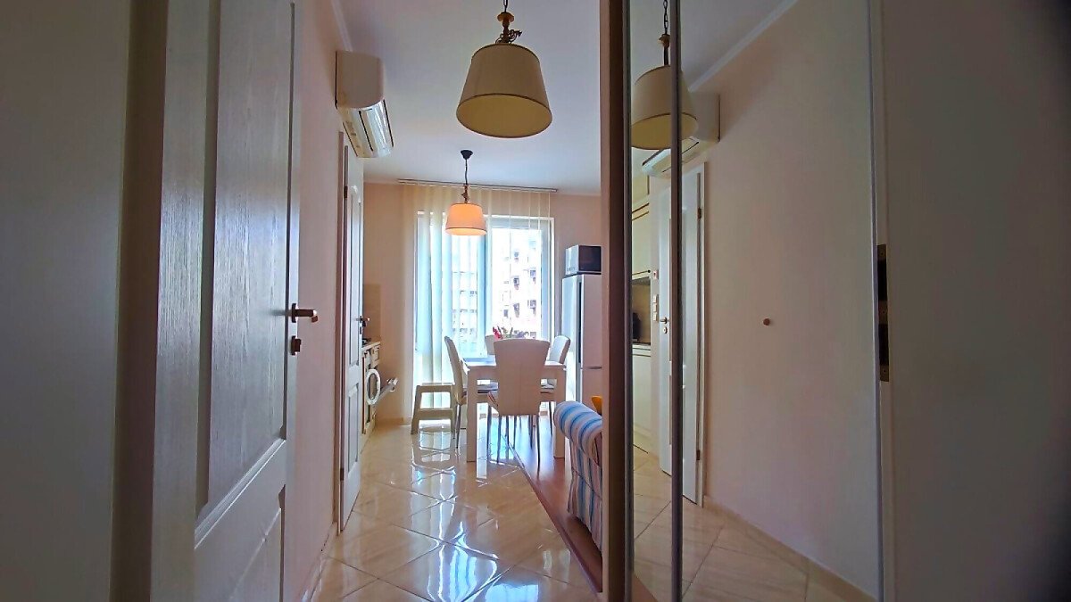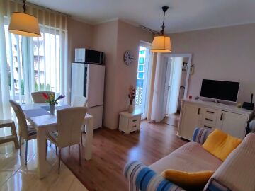 Апартаментът е светъл и много уютен, обзаведен и оборудван, със следното разпределение – входно антре, всекидневна с обособен кухненски бокс и кът за хранене, спалня, баня с тоалетна и душ кабина, балкон.