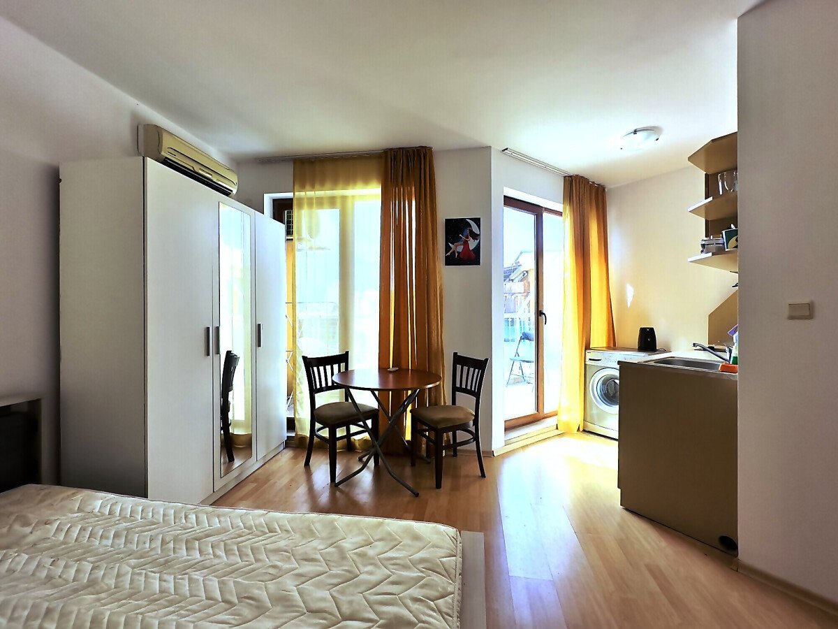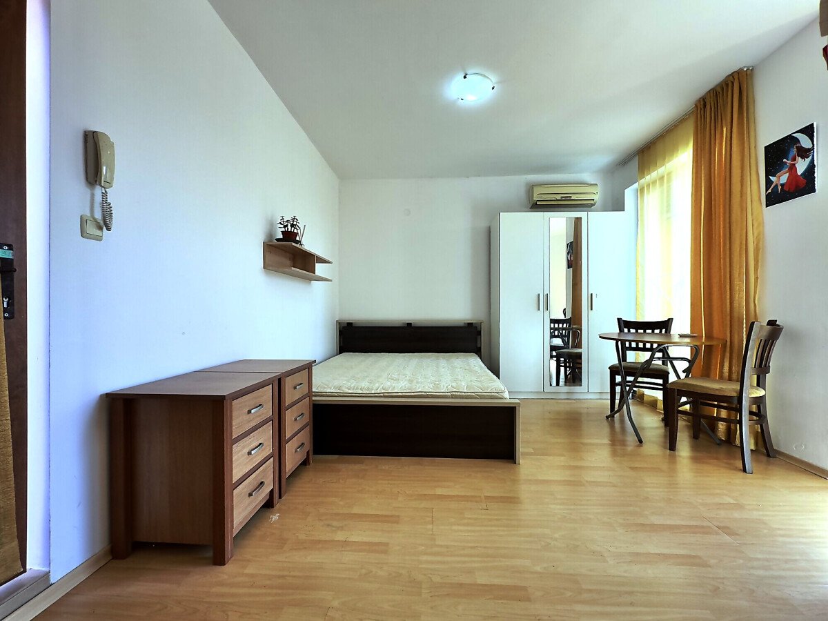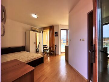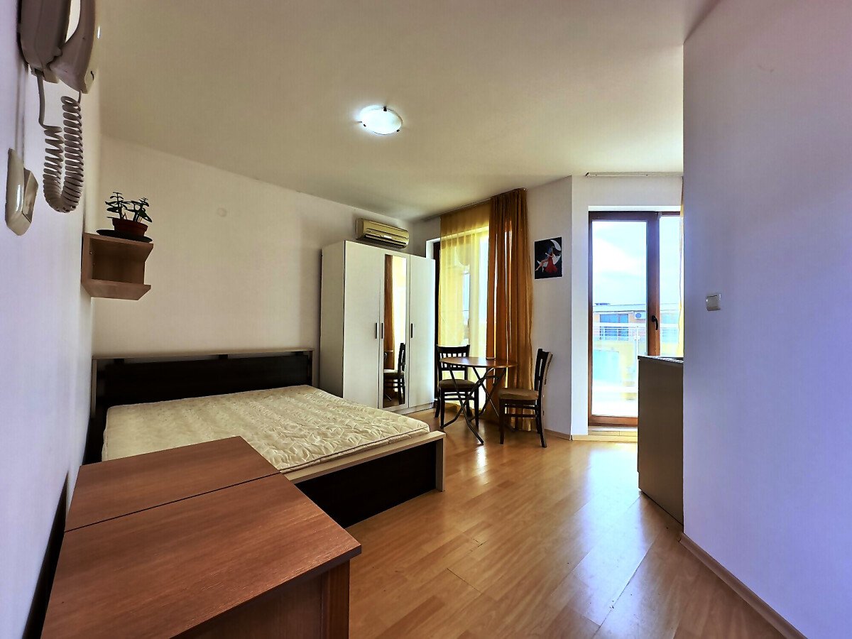 Предлагаме за продажба светло студио с гледка към басейна в прекрасния комплекс „Амадеус 11“, разположен в централната част на курорта Слънчев бряг, на 10 минути пешеходно разстояние от морето и пясъчните плажове.