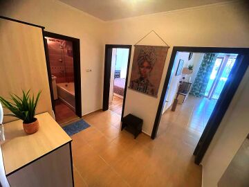 Предлагаме за продажба просторен двустаен апартамент с гледка към басейна в прекрасния жилищен комплекс „Аполон 7“, част от веригата „Аполон“, разположени между курортното селище Равда и град Несебър, на 200 метра разстояние от плажната ивица с фин златист пясък и разнообразие от водни спортове.