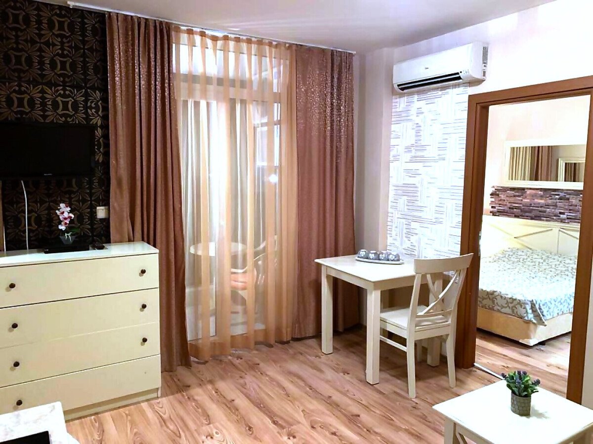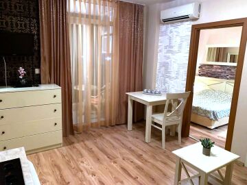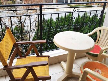Апартаментът е на втори етаж, с площ от 65 кв.м., напълно оборудван и обзаведен, със следното разпределение – входно антре, всекидневна с кухня, две спални, две бани с тоалетна и душ кабина, удобен балкон. Имотът е в отлично състояние, подходящ както за целогодишно живеене и лятна почивка, така и за отдаване под наем.