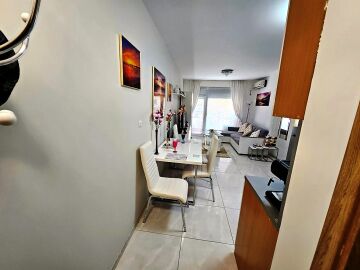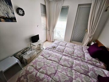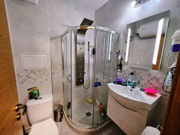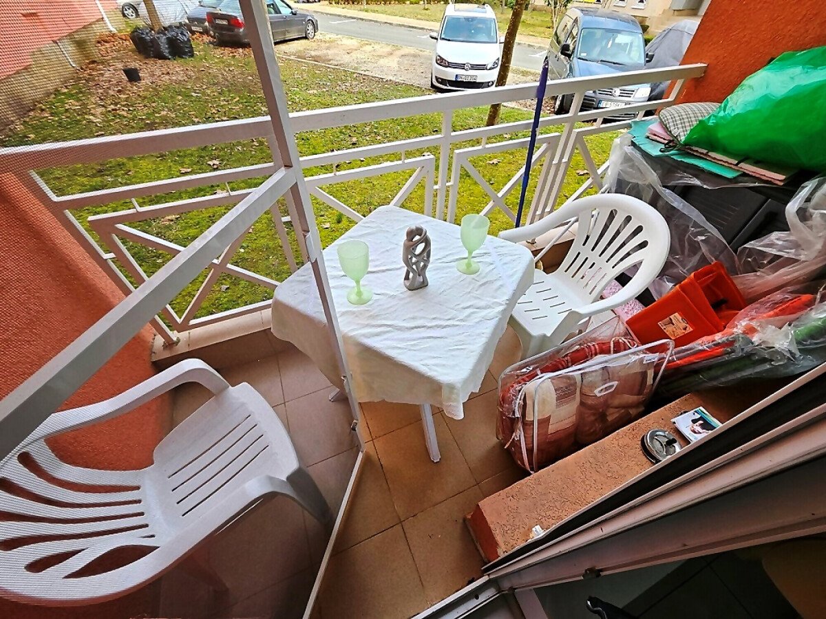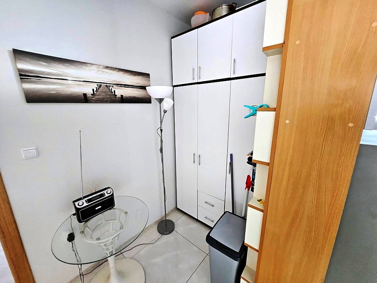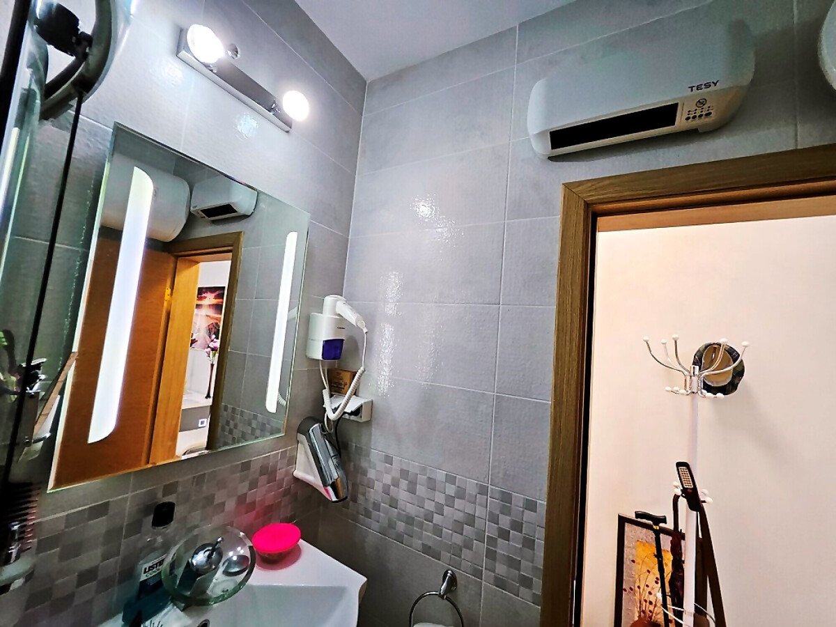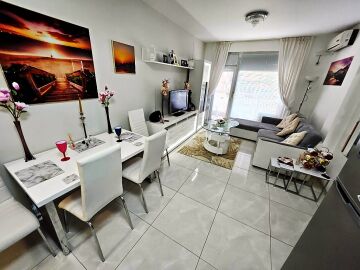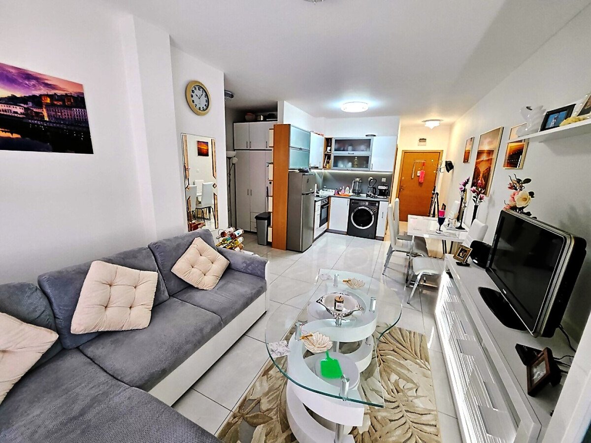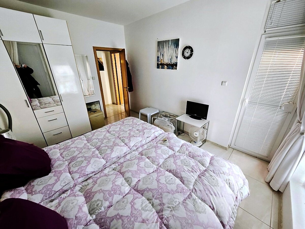 Апартаментът е на първи етаж, обзаведен и оборудван с нови мебели и нова качествена техника, със следното разпределение – входно антре, уютна всекидневна с кът за хранене и кухненски бокс, гардеробна, две спални, баня с тоалетна и душ кабина, балкон с красива гледка към озеленения двор на комплекса.