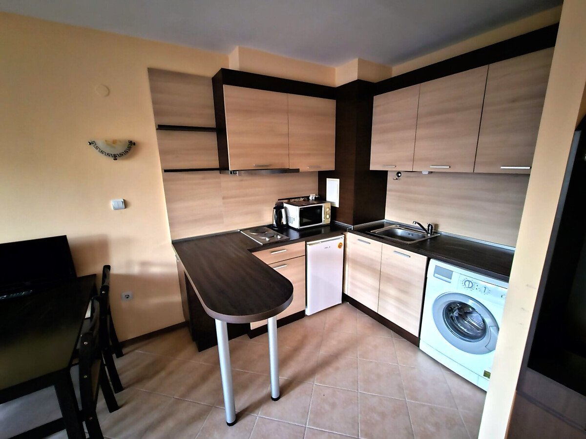 Апартаментът се продава в много добро състояние, напълно оборудван и обзаведен, със следното разпределение – входно антре, голяма всекидневна с обособен кухненски бокс и спалня, баня с тоалетна и душ кабина, просторен балкон.